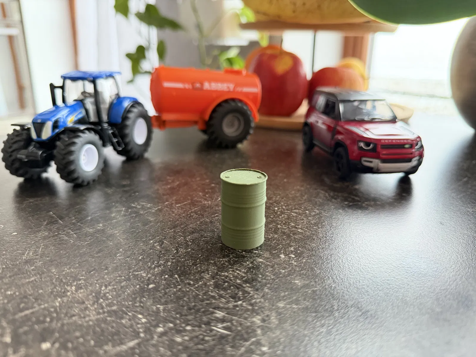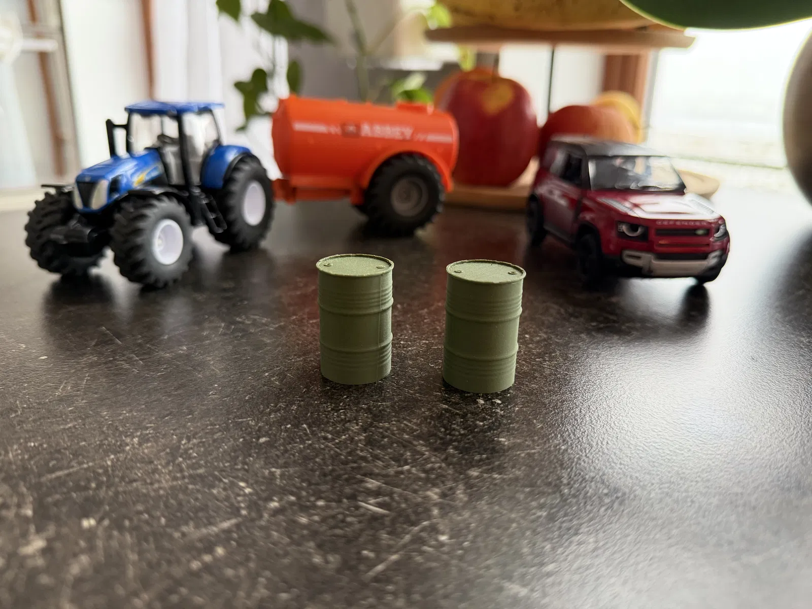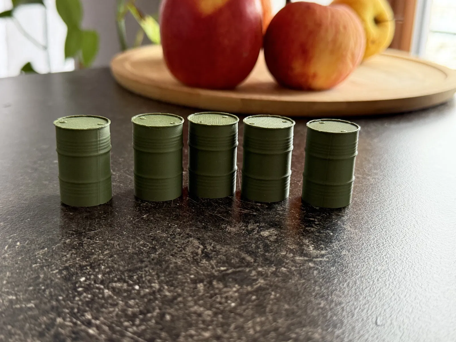 Mô hình Thùng Dầu (Oil Barrel) dạng thùng kim loại cổ điển, dáng trụ đơn giản và chắc chắn. Rất hợp để dựng diorama, cảnh xưởng/khu công nghiệp, bối cảnh chợ, hoặc tùy biến bằng sơn, dán nhãn, hiệu ứng cũ.
