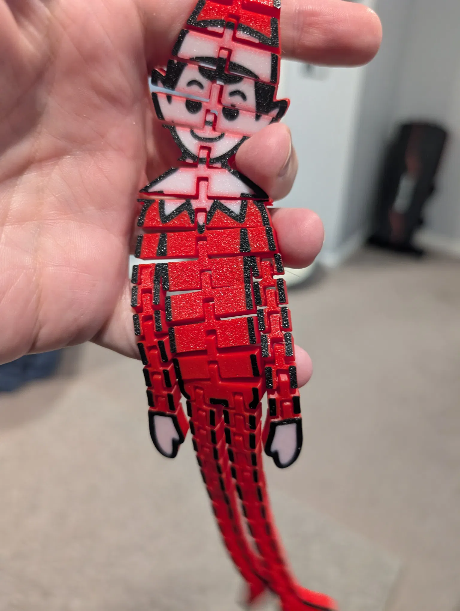 Mẫu Creepy elf on a shelf flexi với tạo hình rùng rợn, dạng flexi (khớp mềm) dễ trưng bày. File có thêm lựa chọn phiên bản double sided để in và nhìn đẹp từ cả hai mặt.