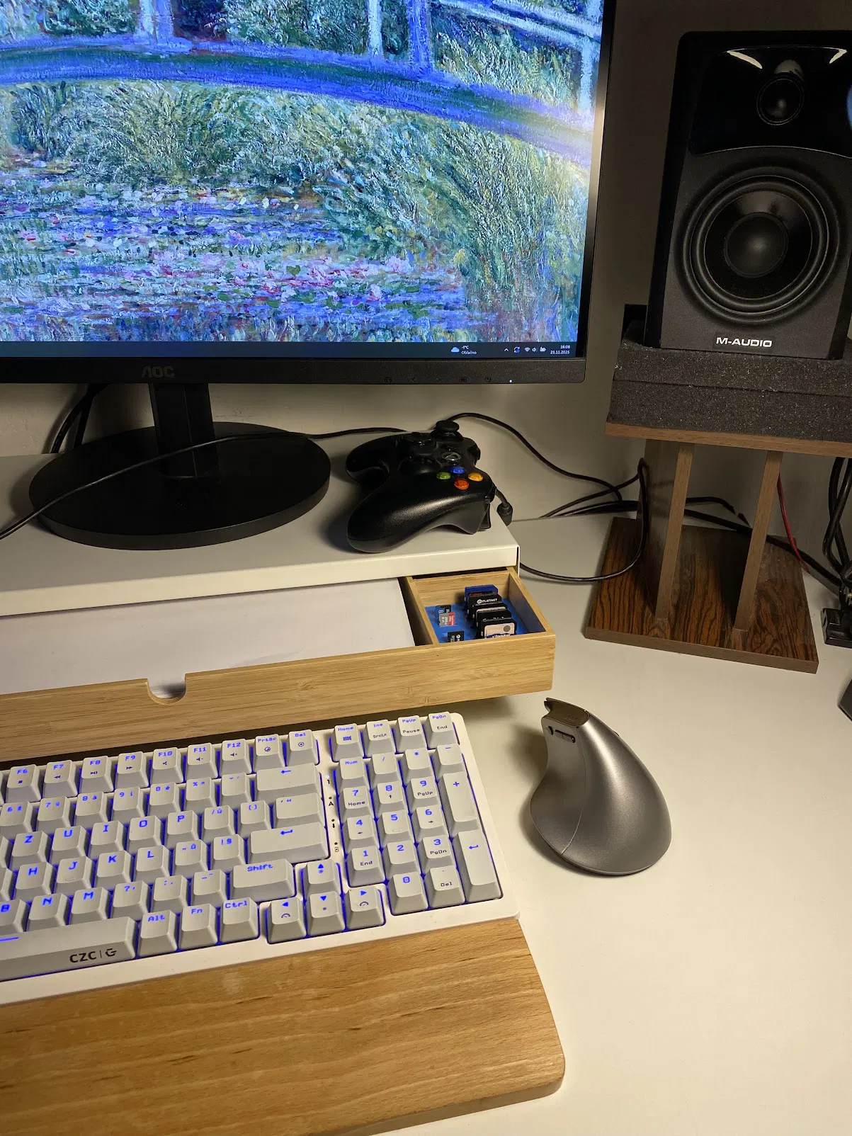 Mẫu khay/giá đựng thẻ micro SD và SD thiết kế để gắn/dùng chung với chân đế màn hình IKEA ELLOVEN, giúp sắp xếp thẻ gọn gàng, dễ lấy và tránh thất lạc khi để trên bàn làm việc.