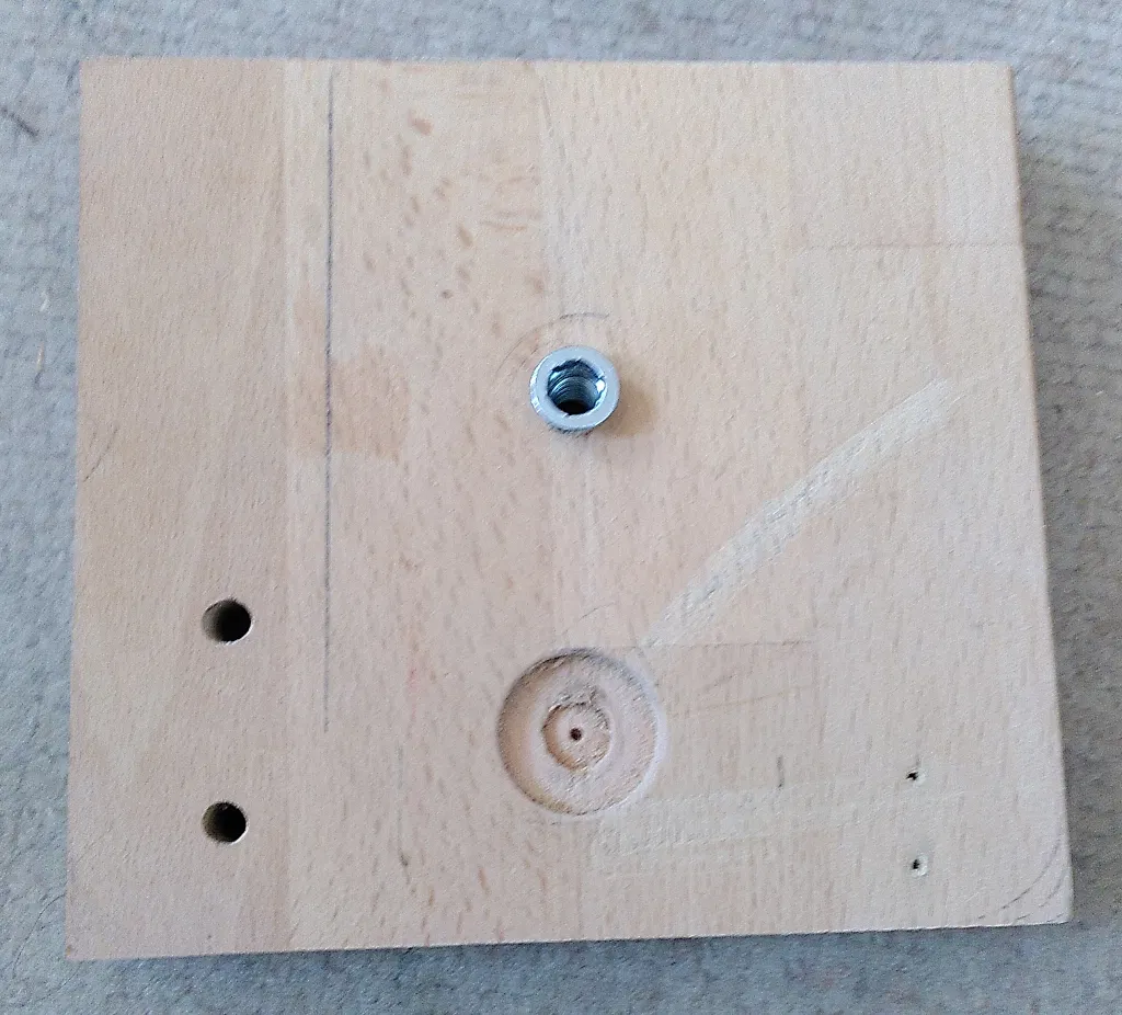 Khoan một lỗ nhỏ bằng mũi forstner 25mm và bên trong dùng mũi khoan 13mm — xem hình