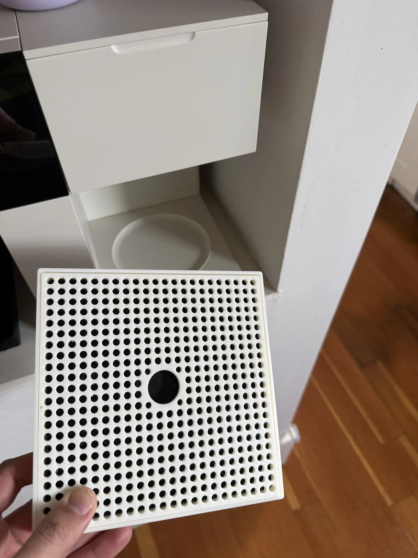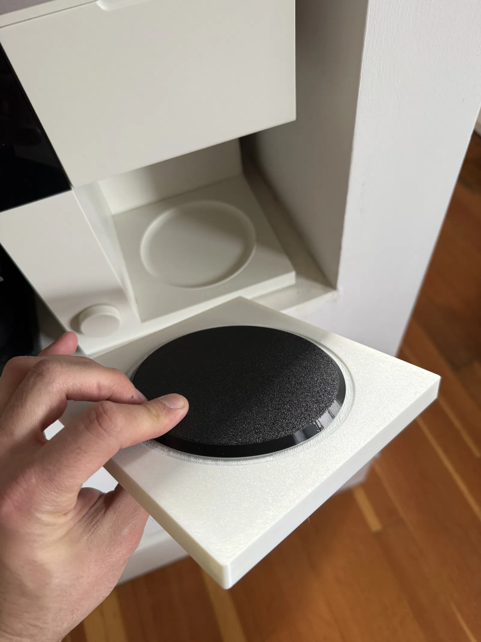 Khay hứng nước (drip tray) cho Fellow Aiden, bản v2 in đa vật liệu: khay trong màu đen (khuyến nghị ASA chịu nhiệt) và pad đáy TPU chống trượt. Vẫn hợp ly Carter Move 12oz, dung tích 140ml.