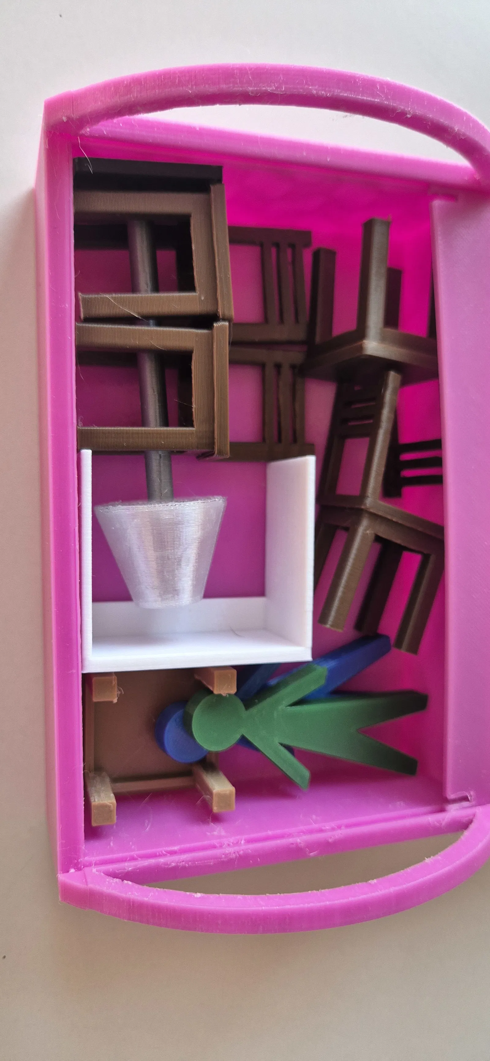 Trò chơi giữ thăng bằng “Crazy Bed – Balance Game”: xếp toàn bộ đồ đạc trong phòng lên chiếc giường bập bênh sao cho không rớt, vẫn vừa và giường không bị nghiêng đổ. Lật ngược giường dùng như hộp cất gọn có khóa trượt.