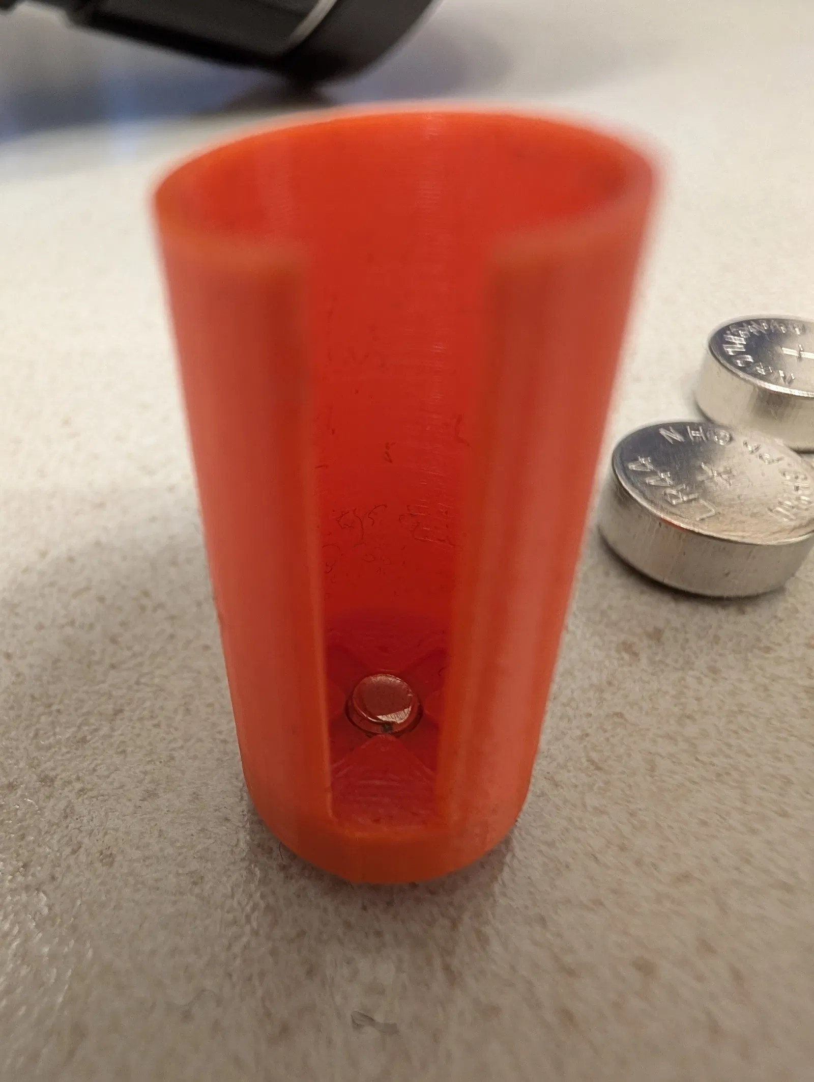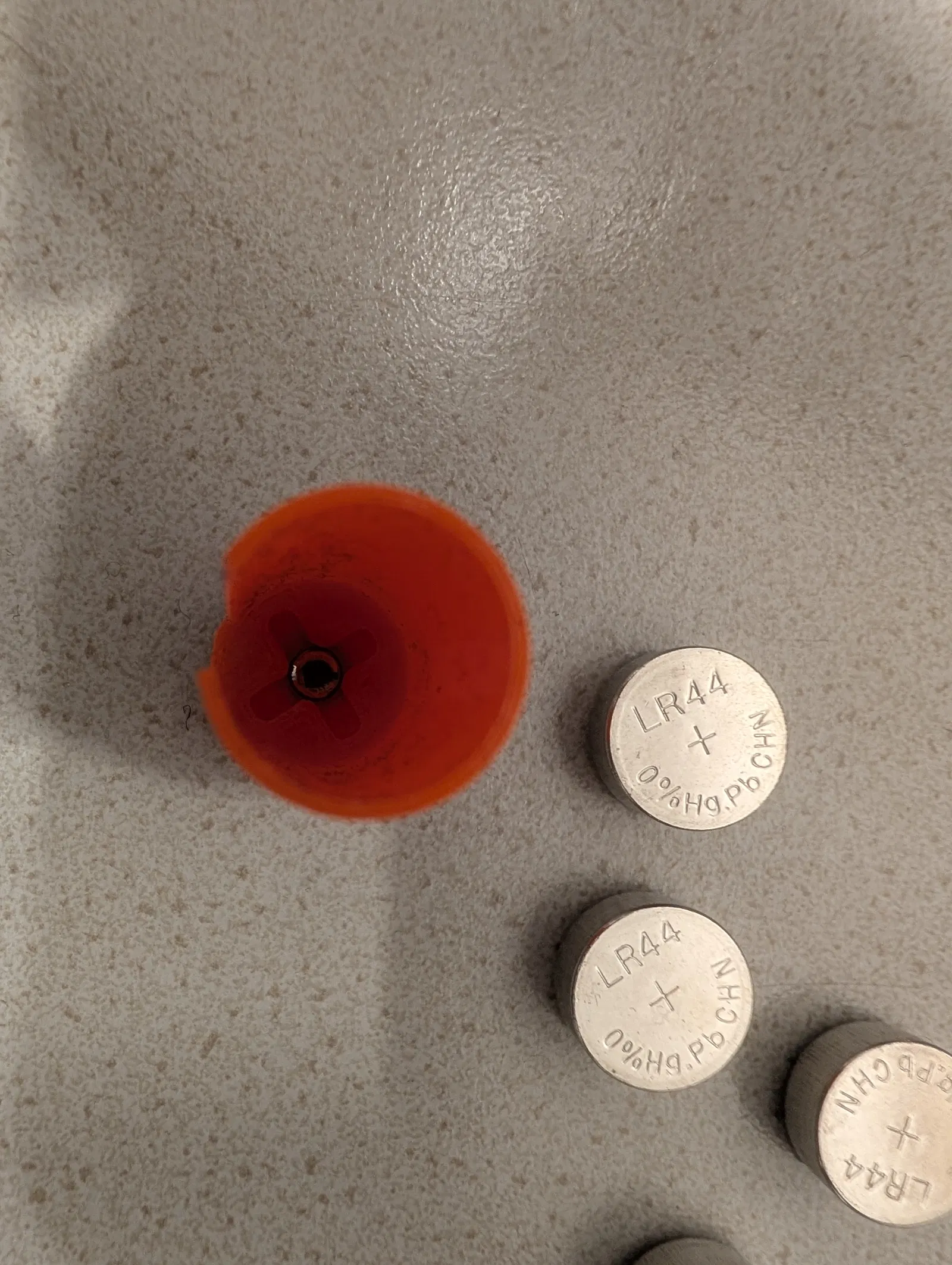 Nói ngắn gọn, mình dùng thước cặp điện tử và FreeCAD để tự thiết kế một adapter dễ in để dùng cho máy. Model in một lèo, không cần supports. Thứ duy nhất cần thêm sau khi in là một con ốc để bù phần chênh chiều cao giữa 4 viên SR44 / LR44 và chiều cao đầy đủ của 1 viên V28PX / 4SR44 / 4LR44.