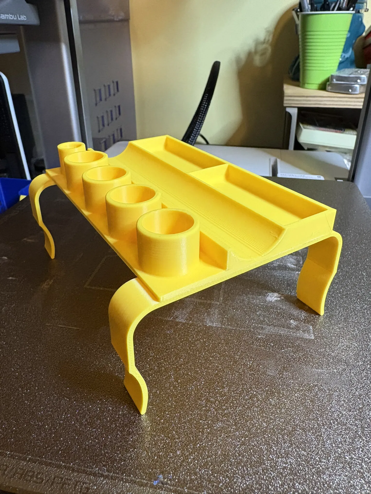 Khay phụ kiện gọn nhẹ bấm khít lên trạm hàn Yihua 959D, giúp giữ linh kiện không bị lăn lóc trong ngăn kéo hay bừa bộn trên bàn. Gắn chân bằng cơ chế snap-fit và dán mặt trên bằng superglue; nên in PETG.