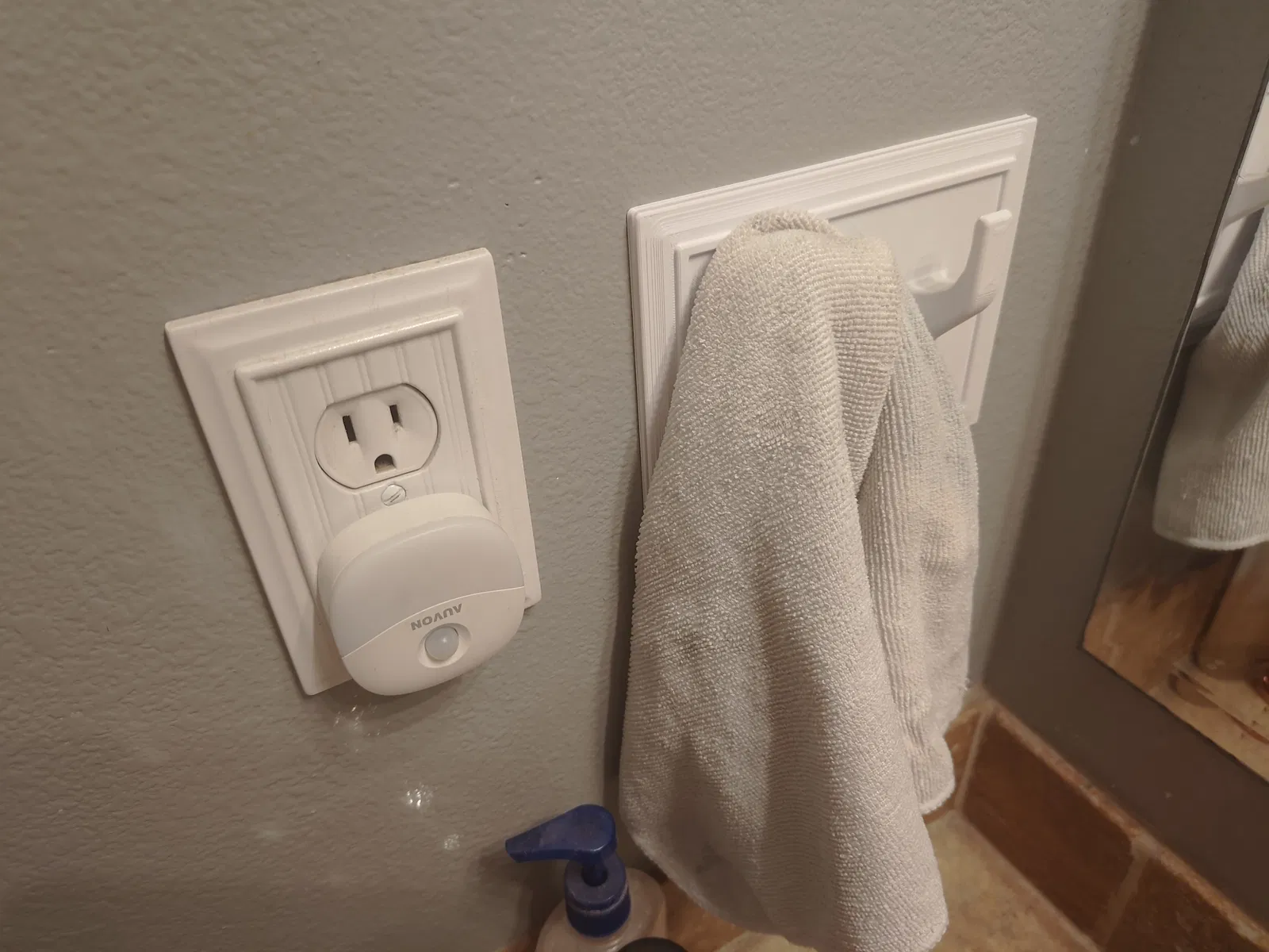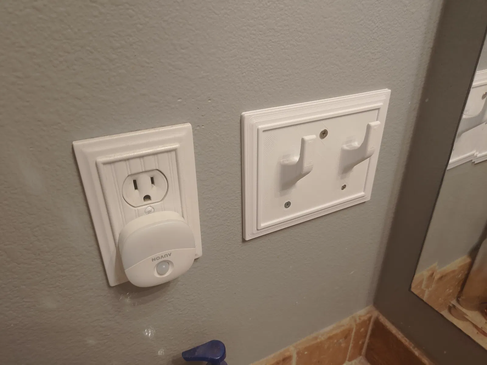 Mình cần một bộ móc treo khăn tay nhìn cho đẹp và gắn vừa trong một chỗ hơi chật, nên mình làm mấy cái này và thiết kế sao cho nhìn chung khớp với các mặt che ổ cắm và công tắc đèn đang có sẵn. Không biết có bao nhiêu người dùng đúng loại mặt che giống vậy để nó “match”, nhưng mình thấy để riêng cũng vẫn đẹp.