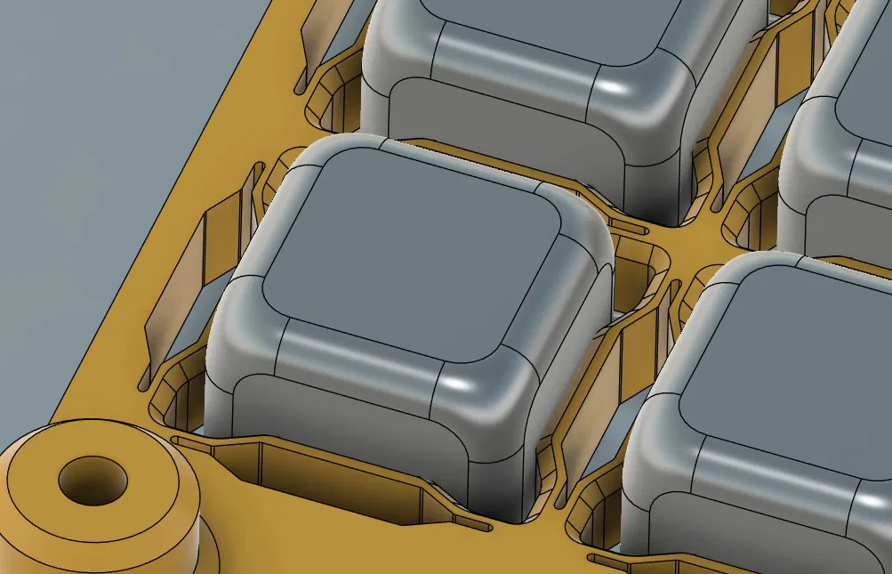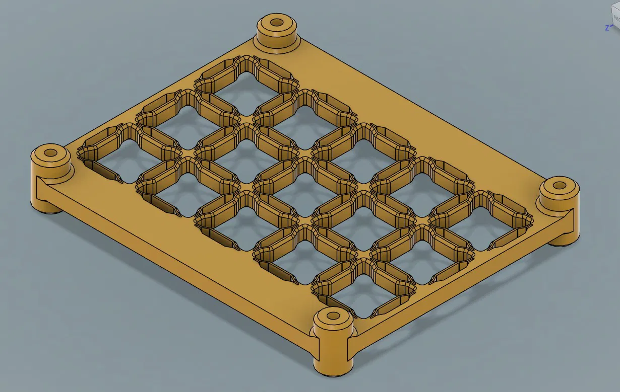 Đồ gá này được thiết kế để giữ chặt các khối cube kích thước 16×16×16 mm nhằm khắc laser chính xác. Hình học của đồ gá giúp định vị ổn định, lặp lại tốt và thay phôi nhanh, rất phù hợp để khắc hàng loạt: logo, QR code, số serial hoặc các dấu nhận diện.