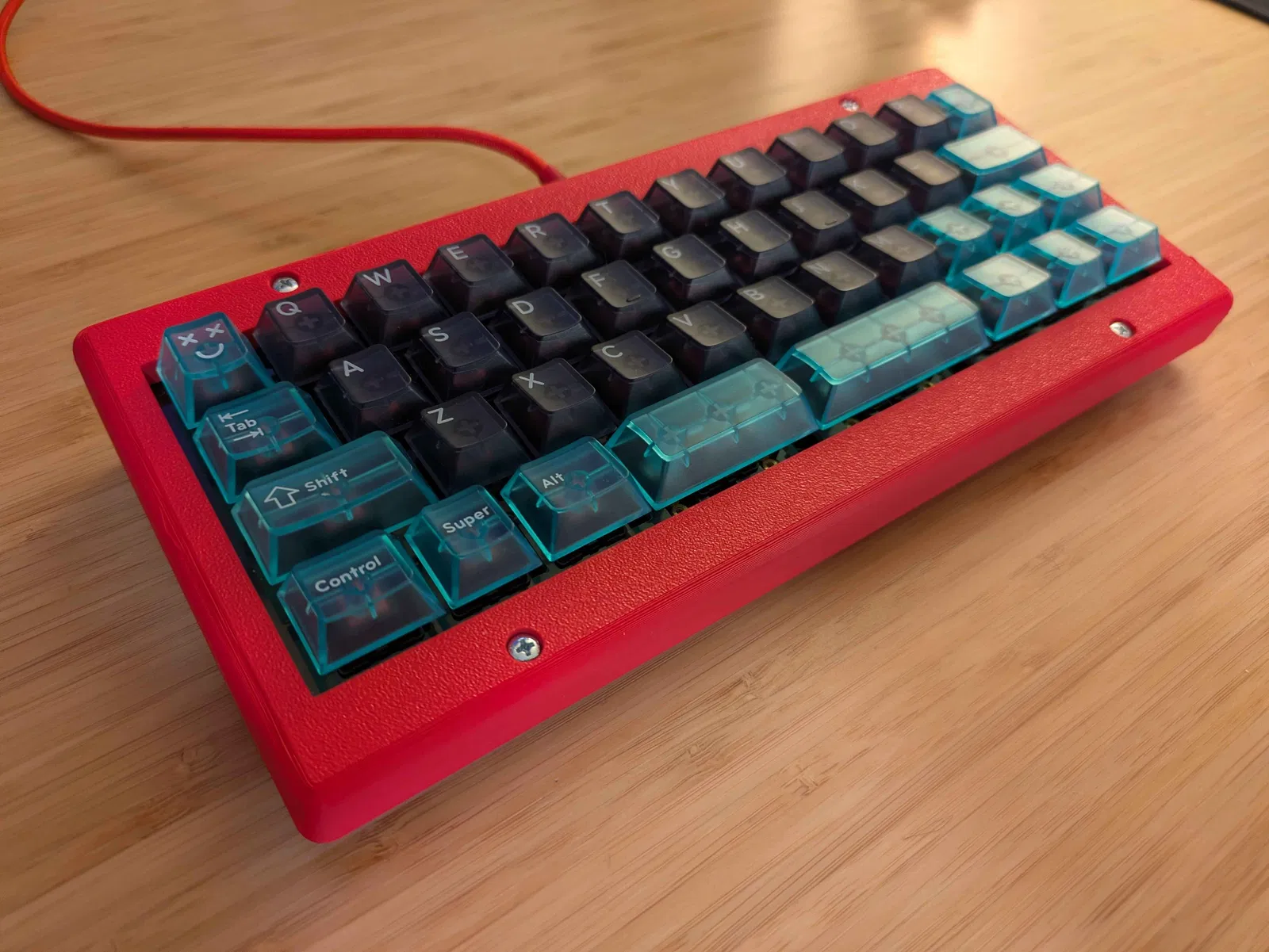Vỏ cho Skellet 40 của Novel Keys/Yiancar Designs, dùng plate đi kèm trong kit. Lắp với 4 ốc M3 (khoảng 16mm) và ê-cu throughhole; có thể thêm gasket mỏng quanh gờ tựa plate. In được không cần support.