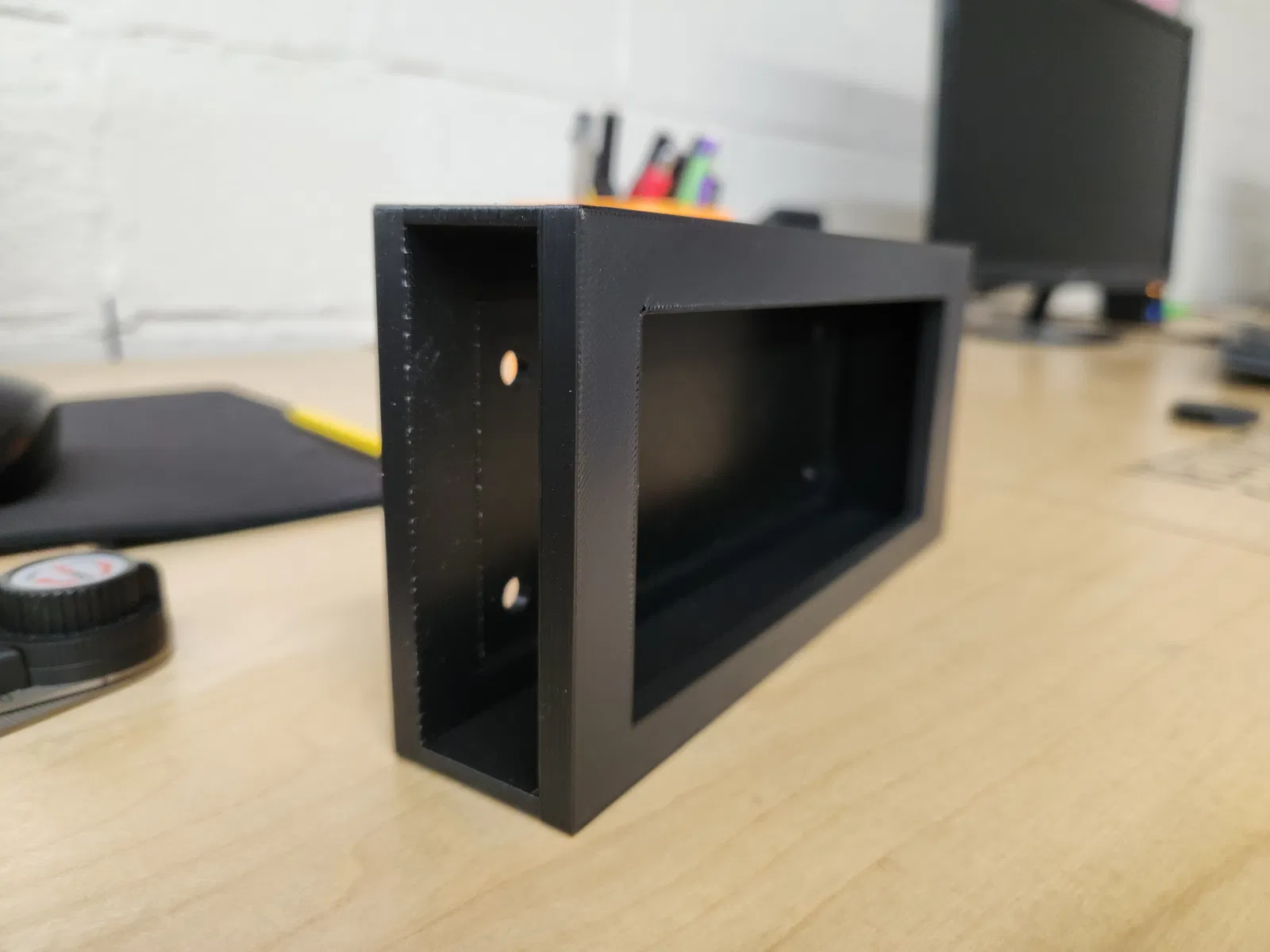 Mẫu Anker Battery Bank Holder giúp giữ pin sạc dự phòng gọn gàng. Battery bank trượt vào dễ dàng và có sẵn lỗ bắt vít để lắp cố định lên tường, bàn hoặc các bề mặt khác.
