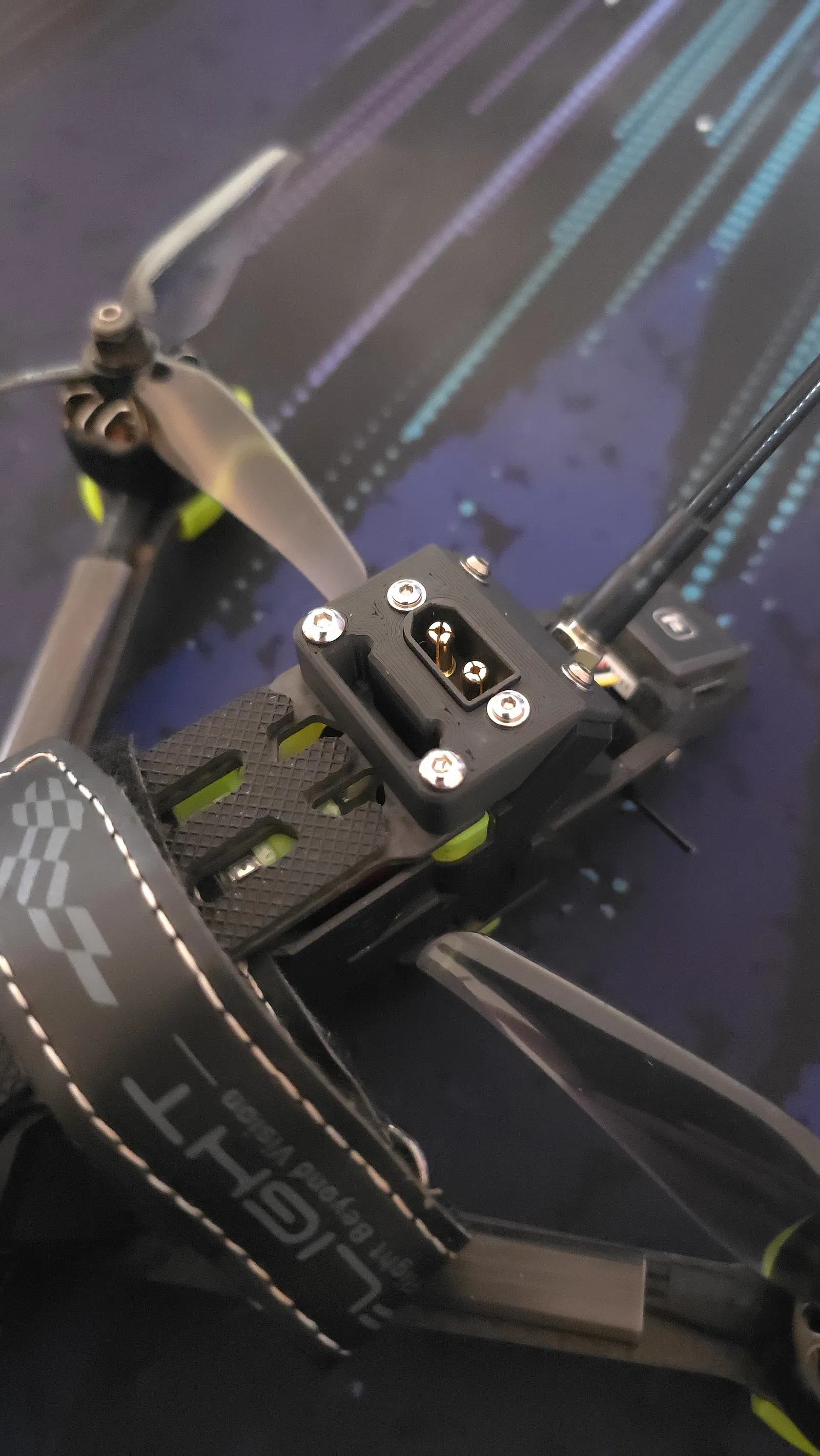 Adapter này được làm để gắn đầu XT60 ở góc 90° thay vì 45°. Pin của mình (SMC HCL RS và Tattu v6 ST) có dây rất ngắn nên chỉ vừa đủ chạm tới đầu cắm.