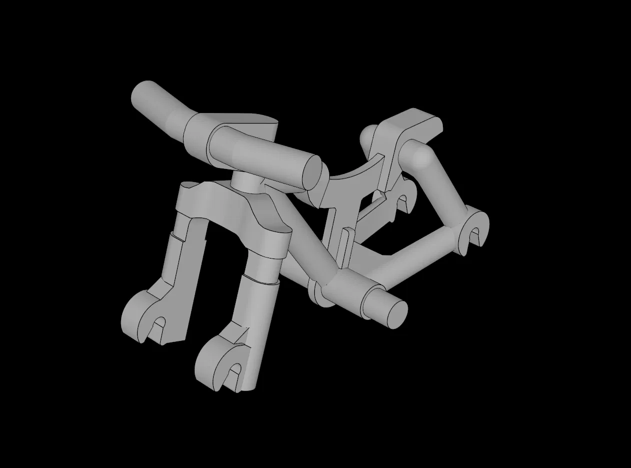 Mẫu 3D khung xe đạp minifig LEGO Compatible (36934.dat) kiểu Heavy Mountain, có sẵn ghi-đông. Thiết kế để lắp vừa và dùng chung trong hệ thống LEGO.