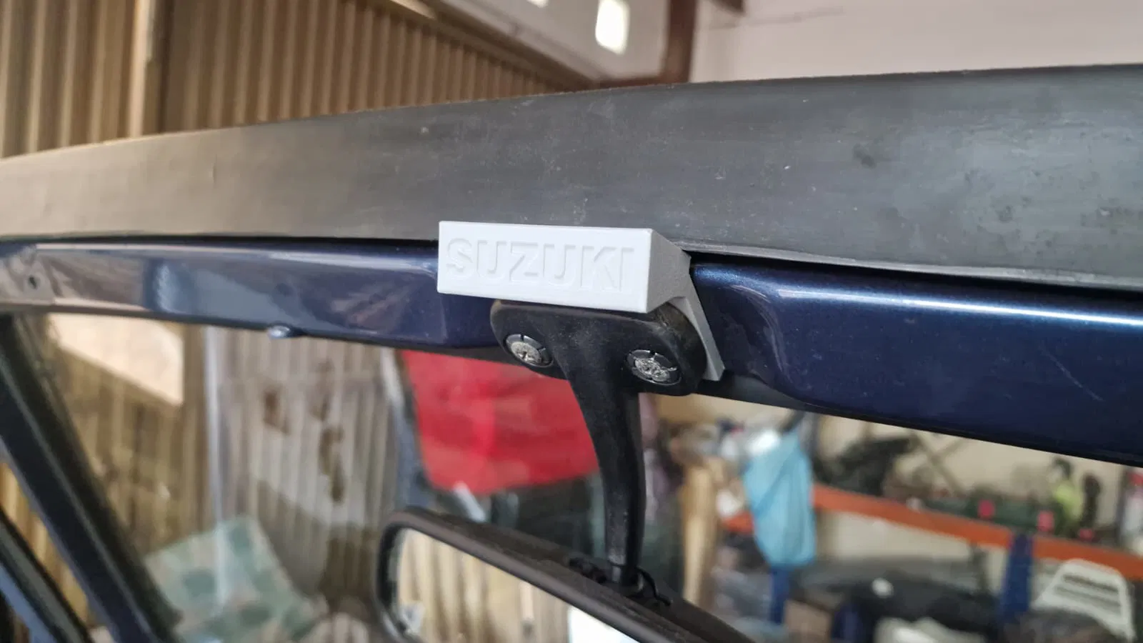 Giá đỡ để gắn loa JBL Charge 5 vào đúng vị trí ngàm zin của gương chiếu hậu trong (gương trung tâm) trên Suzuki Samurai 1985. Lắp bằng vít bắt gỗ 4x60mm (dài) để gia cố, tránh bị gãy do rung động khi xe chạy.