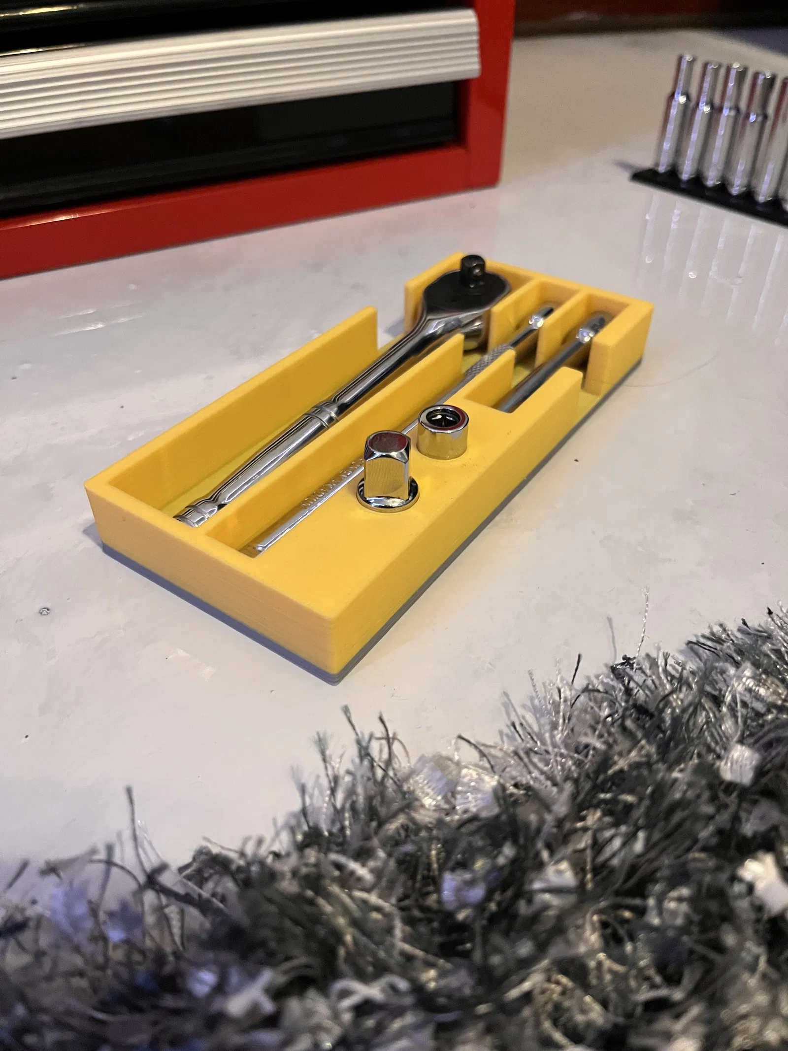 Mình làm món này cho hộp đồ nghề vì mới mua cái mới, mà tìm hoài không ra mẫu nào ổn. In rất dễ, mình in bằng PETG. Giữ được nhiều rachet, nhưng cái mình để trong này là loại Tractor Supply vì mua rẻ. Bạn để lại bình luận nếu có yêu cầu gì, và/hoặc bấm vào profile của mình vì mình có làm socket holders cho toàn bộ các bộ socket của mình ở đó. ANH EM NHỚ ĐĂNG MAKE NHA!!!