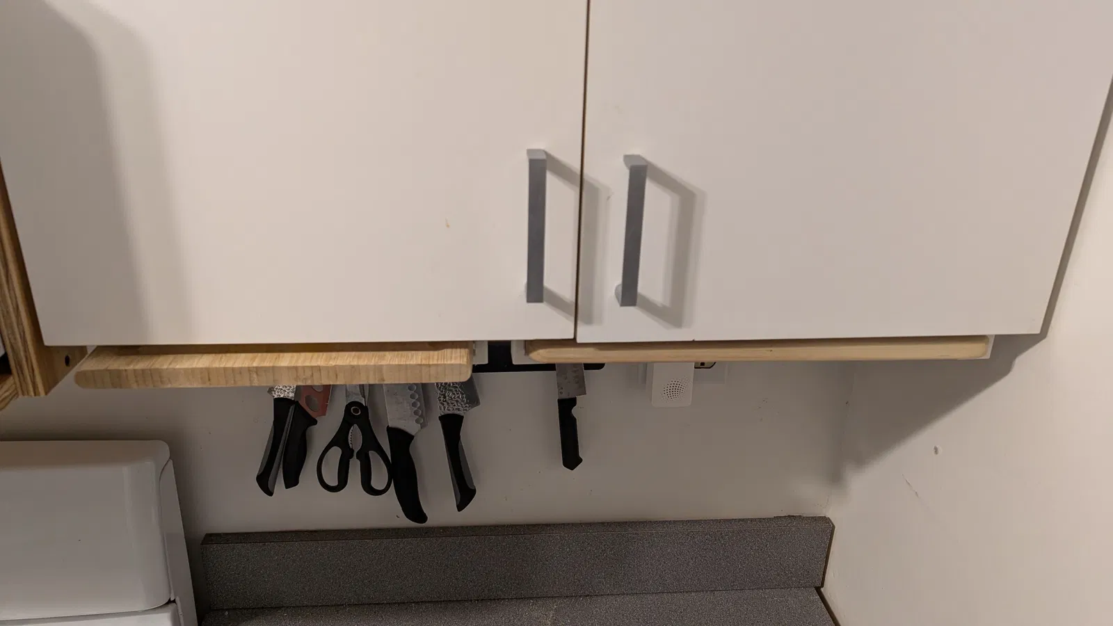 Bộ pát treo thớt siêu nhỏ (13g) giúp cất thớt phẳng dày tới 19.5mm ngay dưới tủ/kệ, giải phóng mặt bàn bếp. Có hướng dẫn in (tree supports) và lắp đặt chi tiết, kèm file 3mf hỗ trợ.