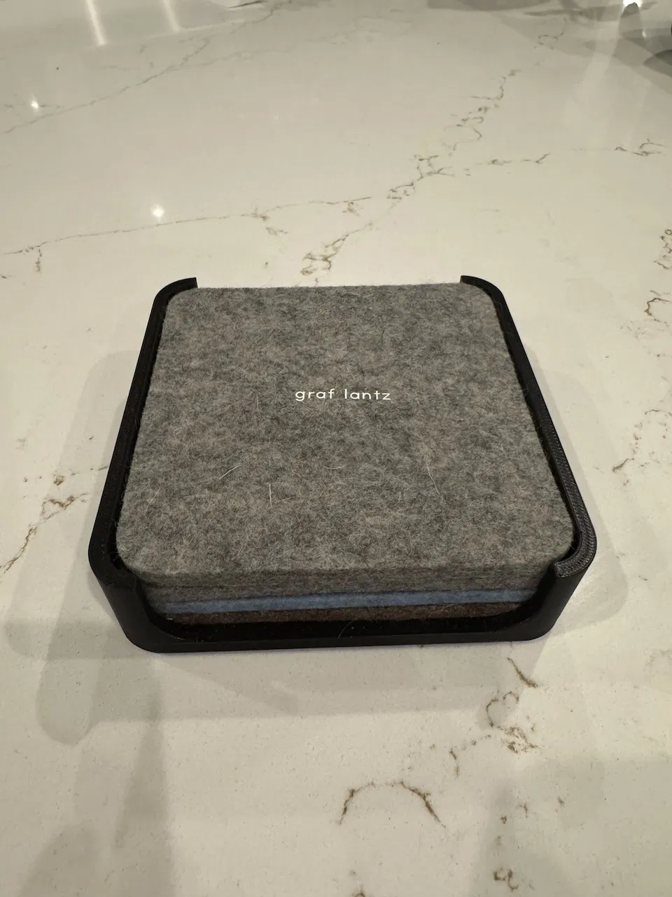 Mẫu Coaster Holder dùng để đựng/gom gọn bộ lót ly vuông Graf Lantz Bierfilzl Merino Wool (set 4 miếng) mua trên Amazon, giúp sắp xếp gọn gàng và dễ lấy khi sử dụng.