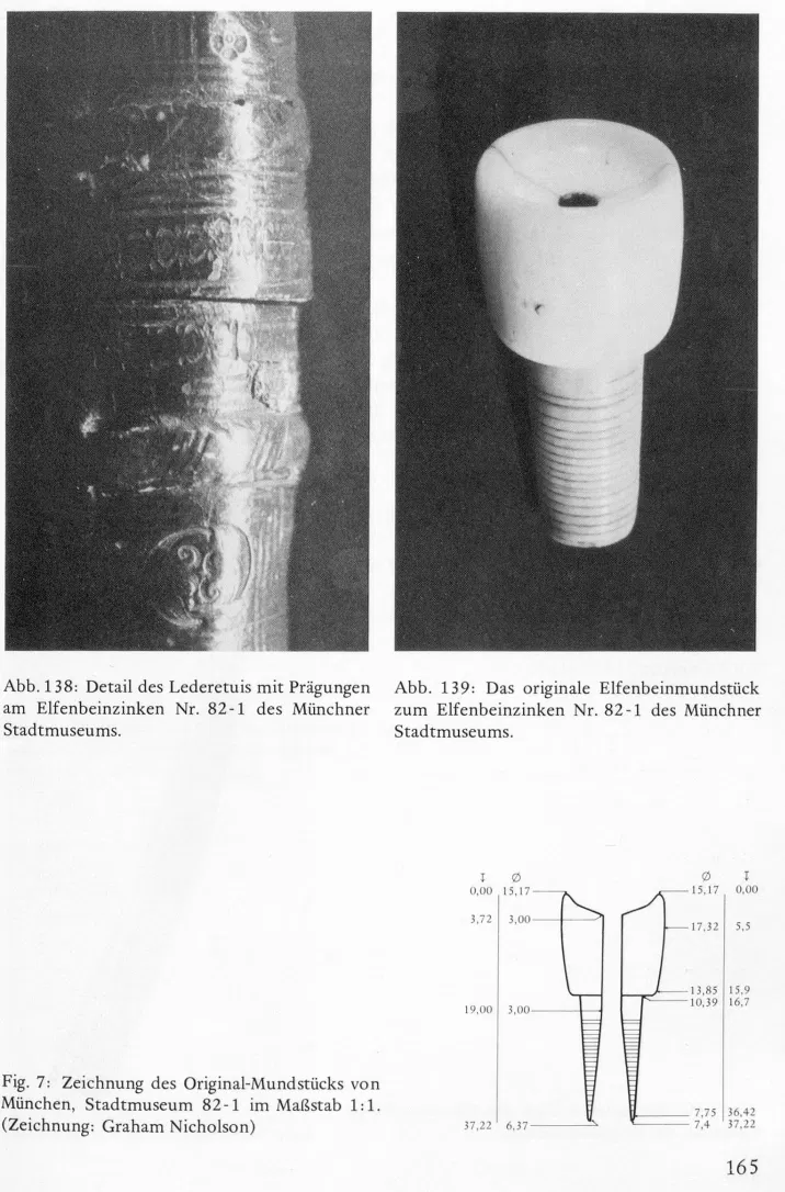 Mẫu miệng thổi cornett từ Munich, City Museum 82-1. Nội dung trích từ tài liệu “Zink und Posaune…”, có bản vẽ miệng thổi nguyên bản tỷ lệ 1:1 và kích thước mouthpiece socket Ø 7.75–10.39 mm.
