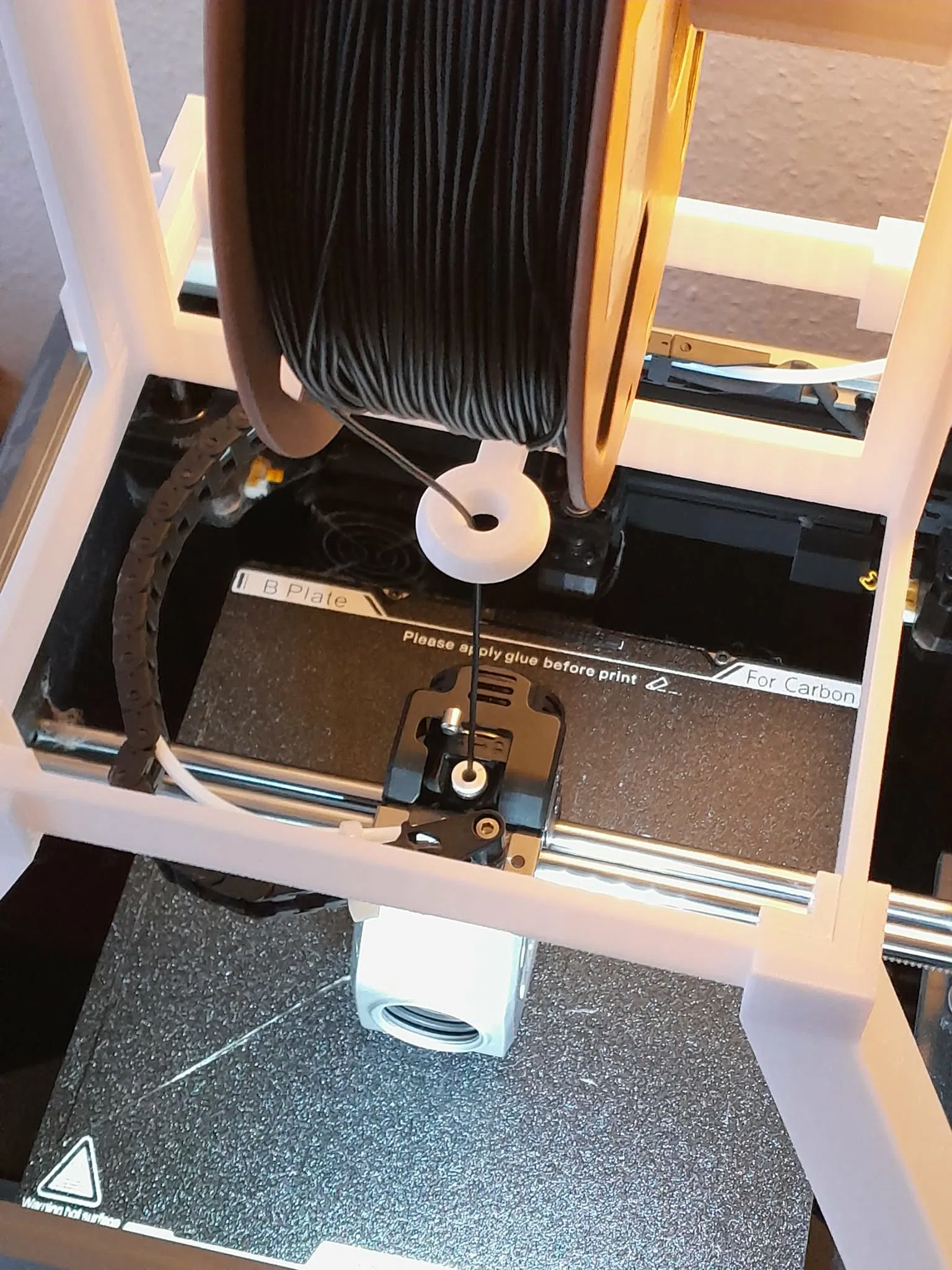 TPU mềm thường không đi qua đường feed tiêu chuẩn của Creality K1/K1C. Mẫu giá đỡ cuộn đặt trên nóc này giúp đưa filament xuống printhead từ trên. In 2 phần trên bàn 22x22 cm, không cần vít/bearing.