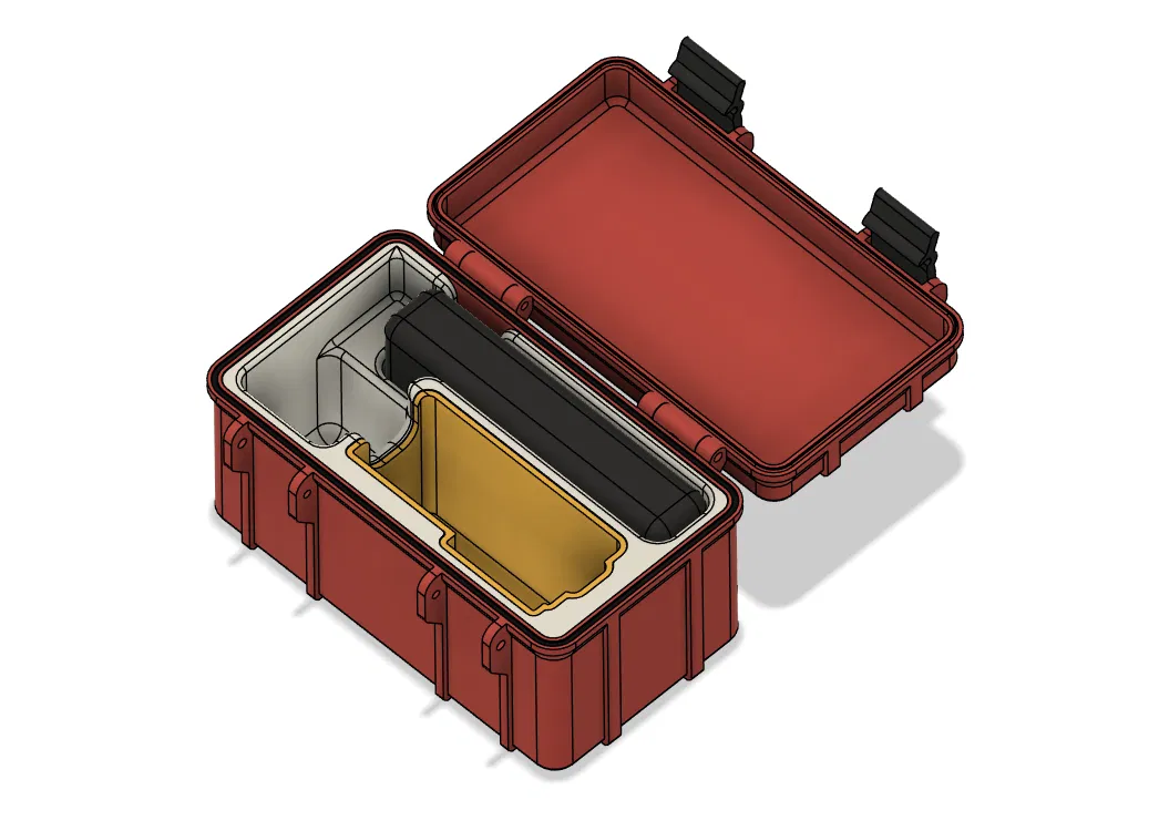 Mẫu test ốp rugged cho DJI Osmo Action 3/4/5 Pro, có kèm hộp pin. Nếu bạn in thử, nhờ báo giúp camera và các chi tiết có vừa khít không. Chỉ cần vài con ốc m3x30 để gắn latch.