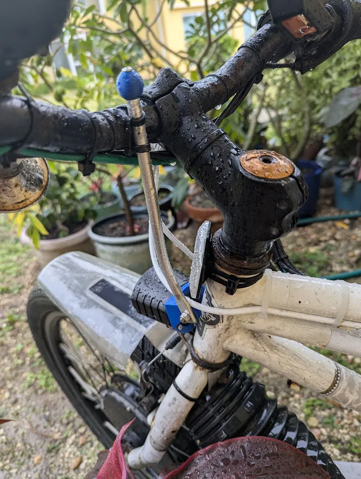 Giải pháp giúp hạ góc chiếu (dip) của đèn pha e-bike để dễ đáp ứng quy định đèn. Lắp bằng 5 vít self-tapping 3mm, linkage rod dùng M5. Có kèm file núm vặn cho cần gạt bằng thanh nhôm 8mm.