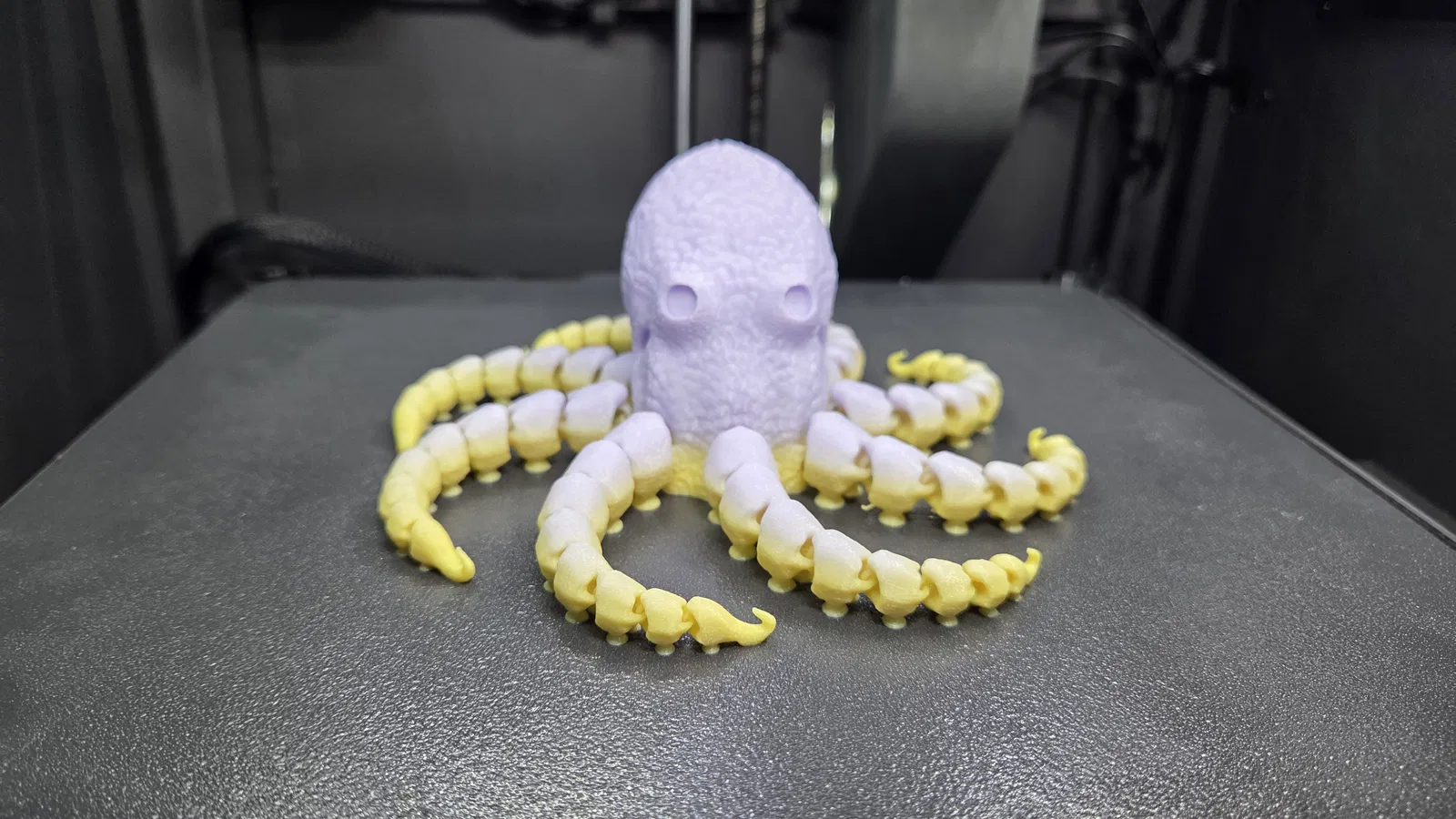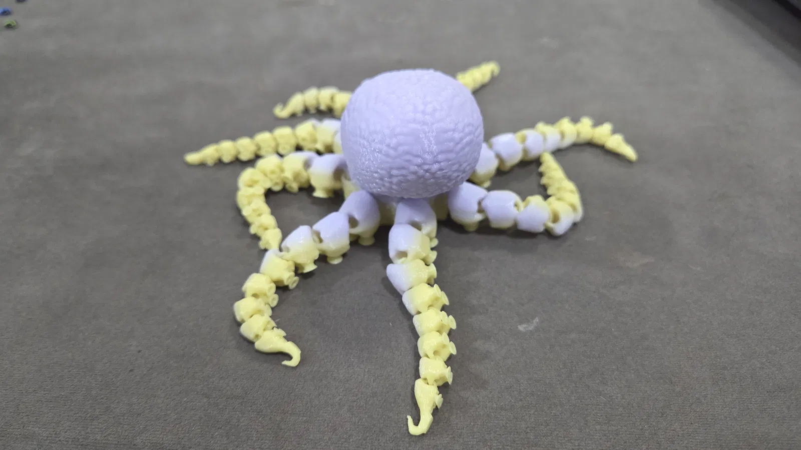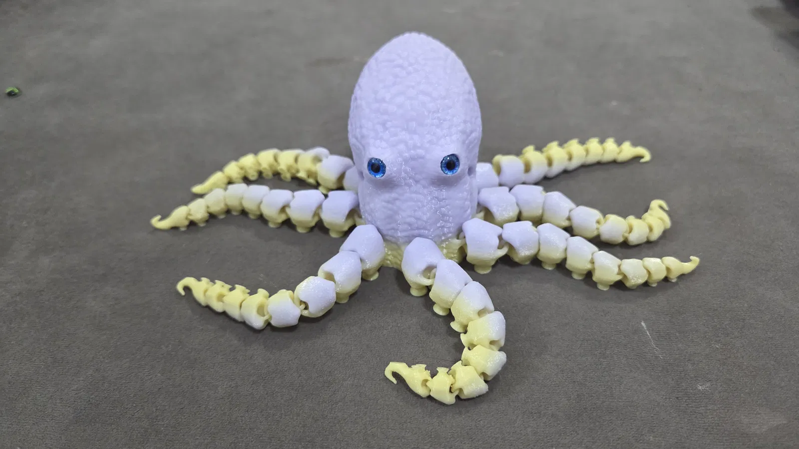 Mẫu bạch tuộc khớp nối siêu chi tiết có giác hút, tương thích gắn mắt kính (glass eyes) 6mm và 8mm. Có file 3MF cho từng phiên bản, không cần supports; khuyến nghị dùng brim và máy phải cân chỉnh chuẩn.