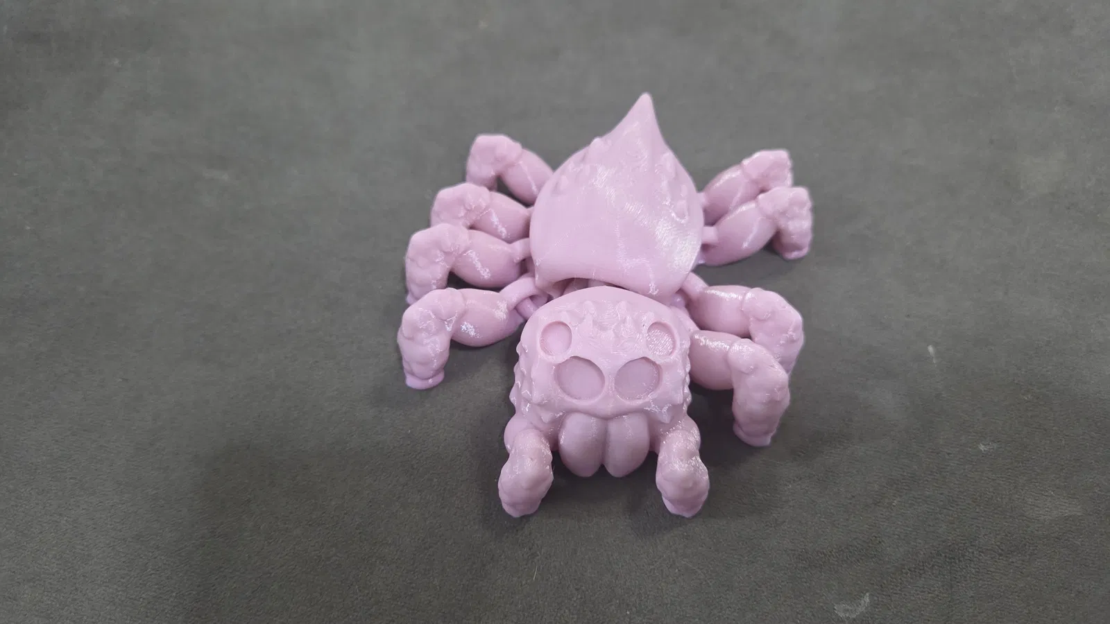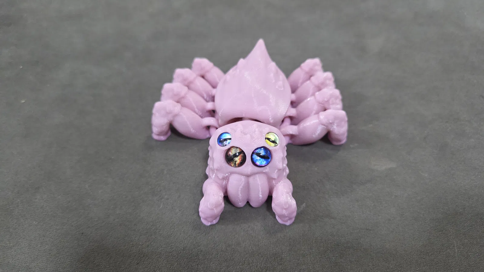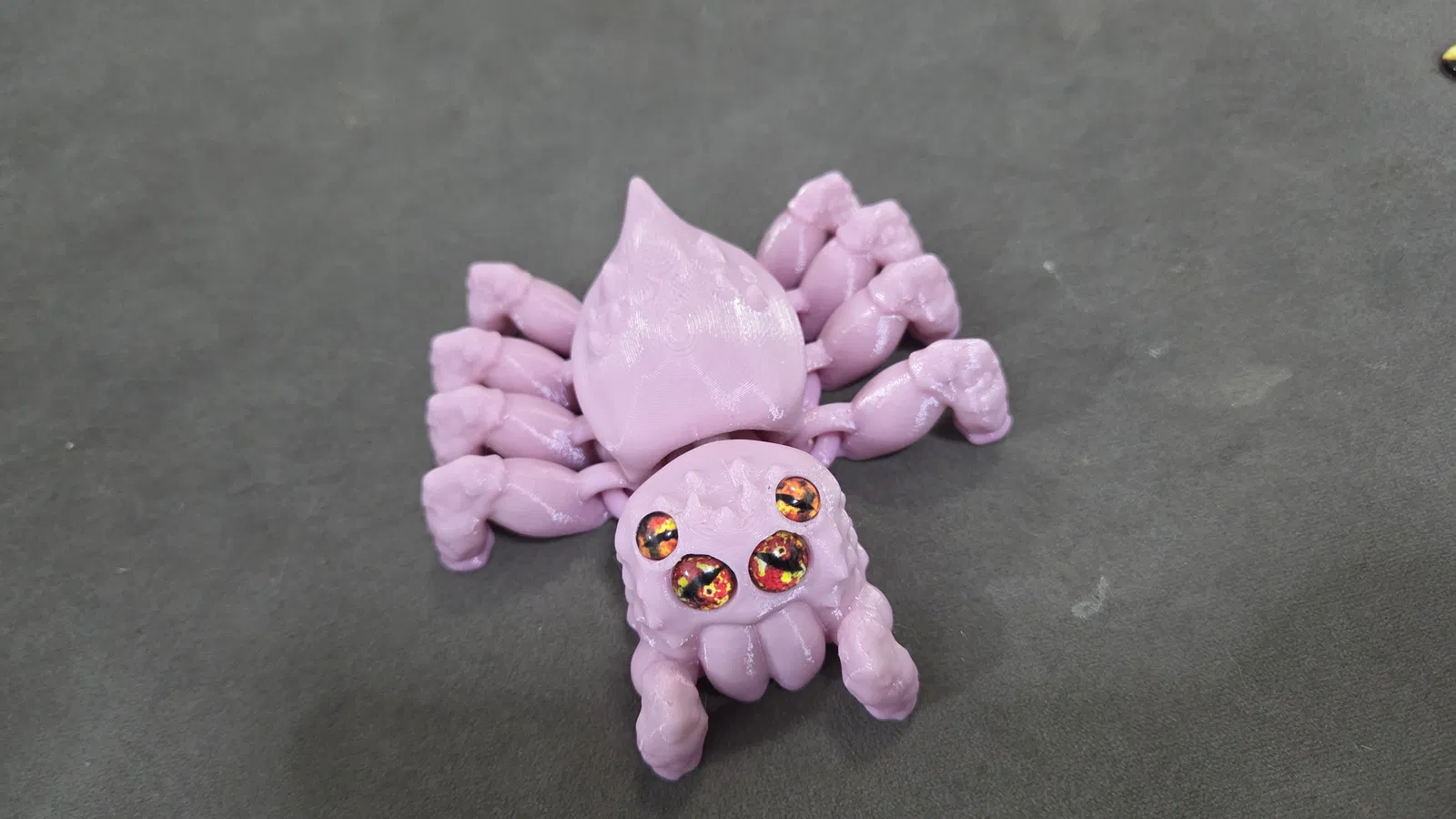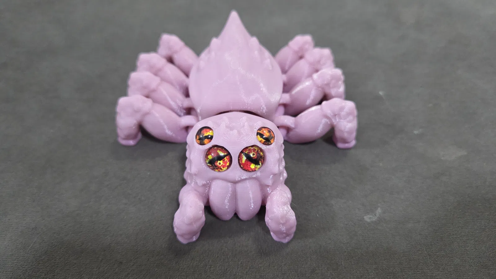 Mẫu Articulated Jumping Spider của Daan_ii nay tương thích mắt kính 6mm và 8mm (cần cả hai cỡ). Kèm file 3mf, sau khi slicing sẽ thấy 4 lỗ mắt. In được không cần supports; thêm brim nếu bám bàn yếu.