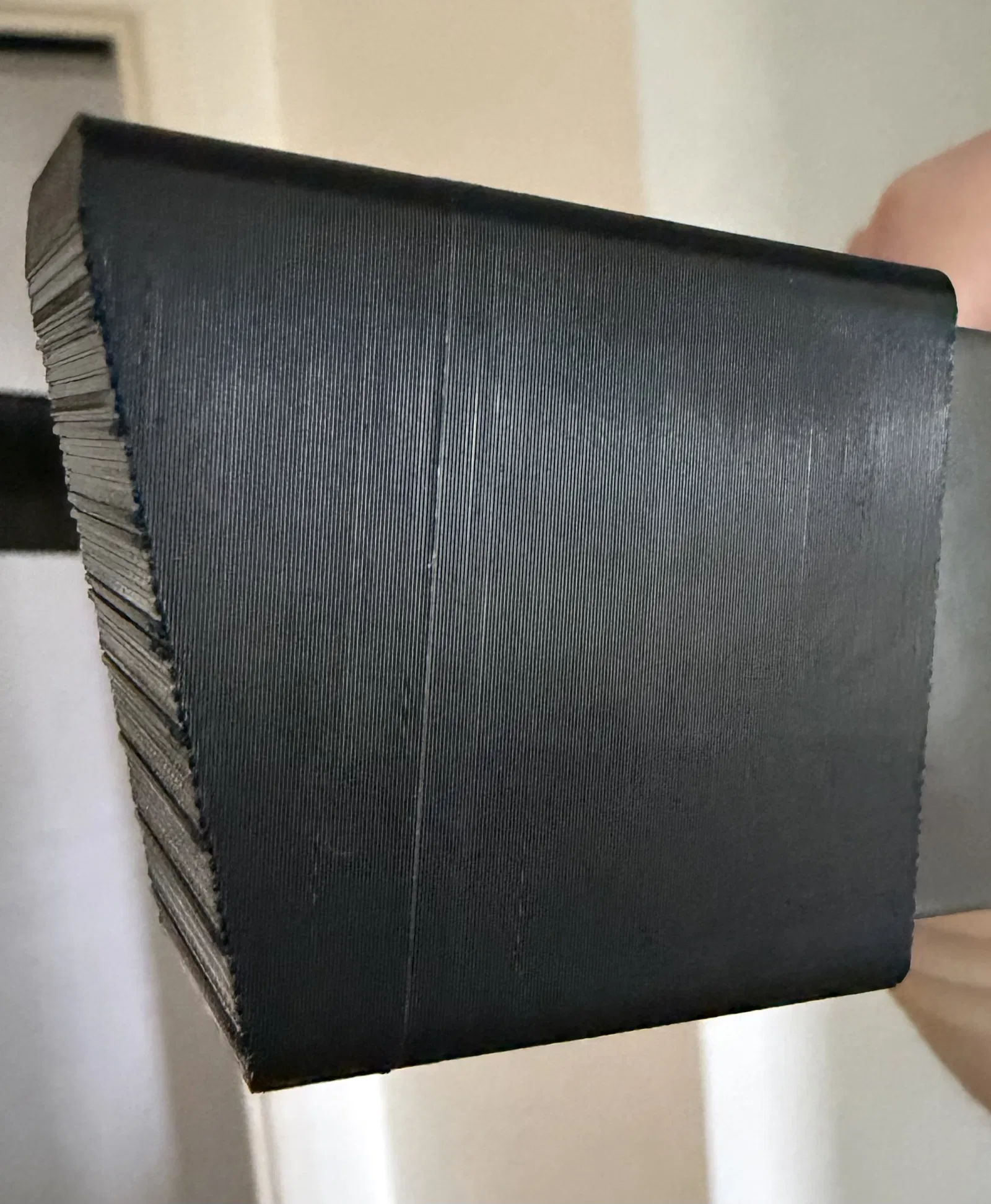 Mình khuyên in bằng PETG và bật supports. Khi in, để mặt đáy có gân (ribbed bottom) hướng lên trên.