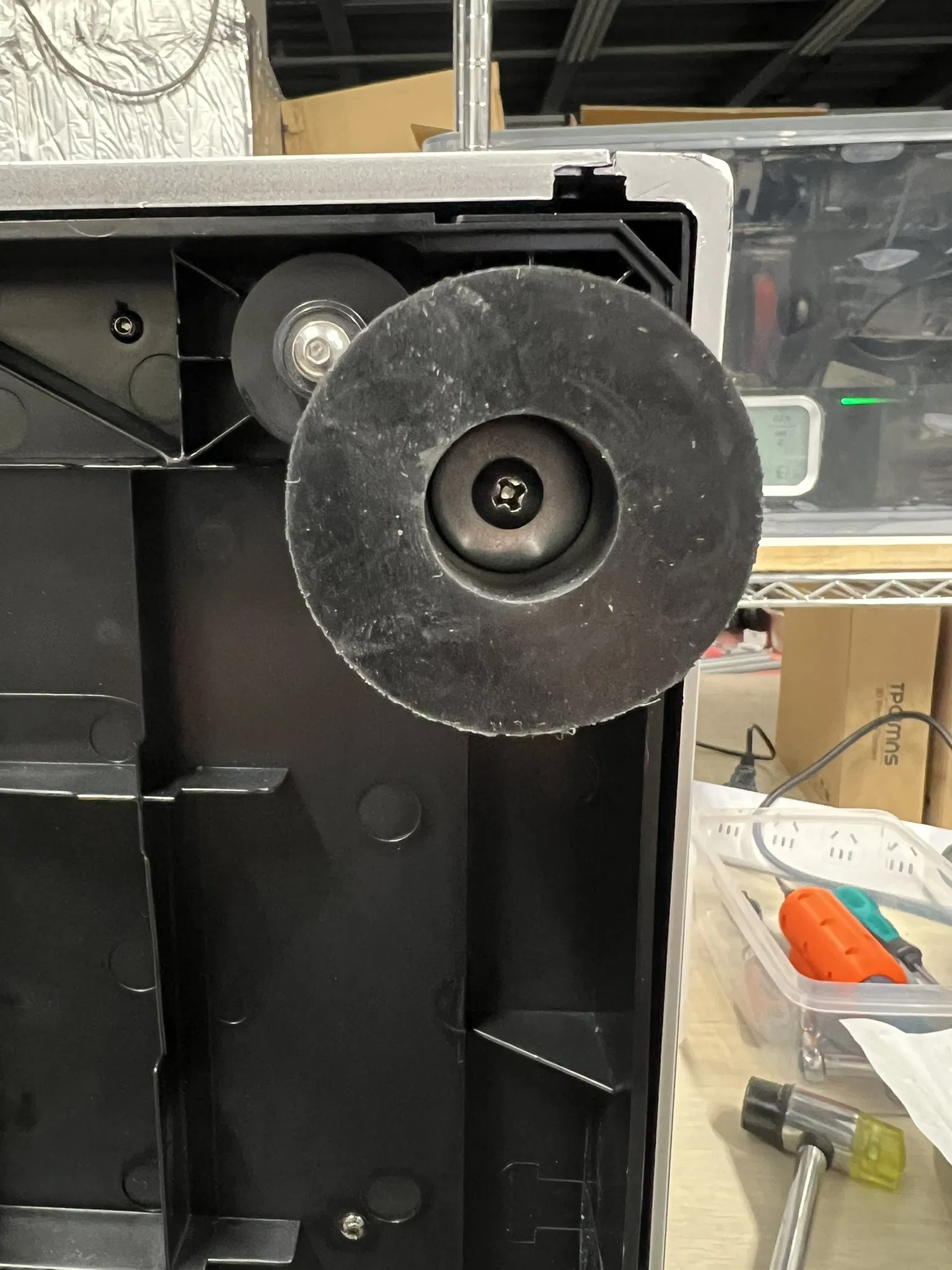 Mình lúc nào cũng muốn cải thiện phần chân đỡ của Q2. Chân cao su zin thì nhỏ, nhìn không có vẻ “gánh” nổi trọng lượng của máy (>25kg), nhất là khi để Qidi Box đầy đồ ở trên nóc thì tổng cân nặng lên hơn 35kg (có khi còn nặng hơn người yêu bạn, haha~). Sau đó mình kiểm tra kết cấu phần chân đỡ của Q2 và thấy nó yếu hơn mình nghĩ.