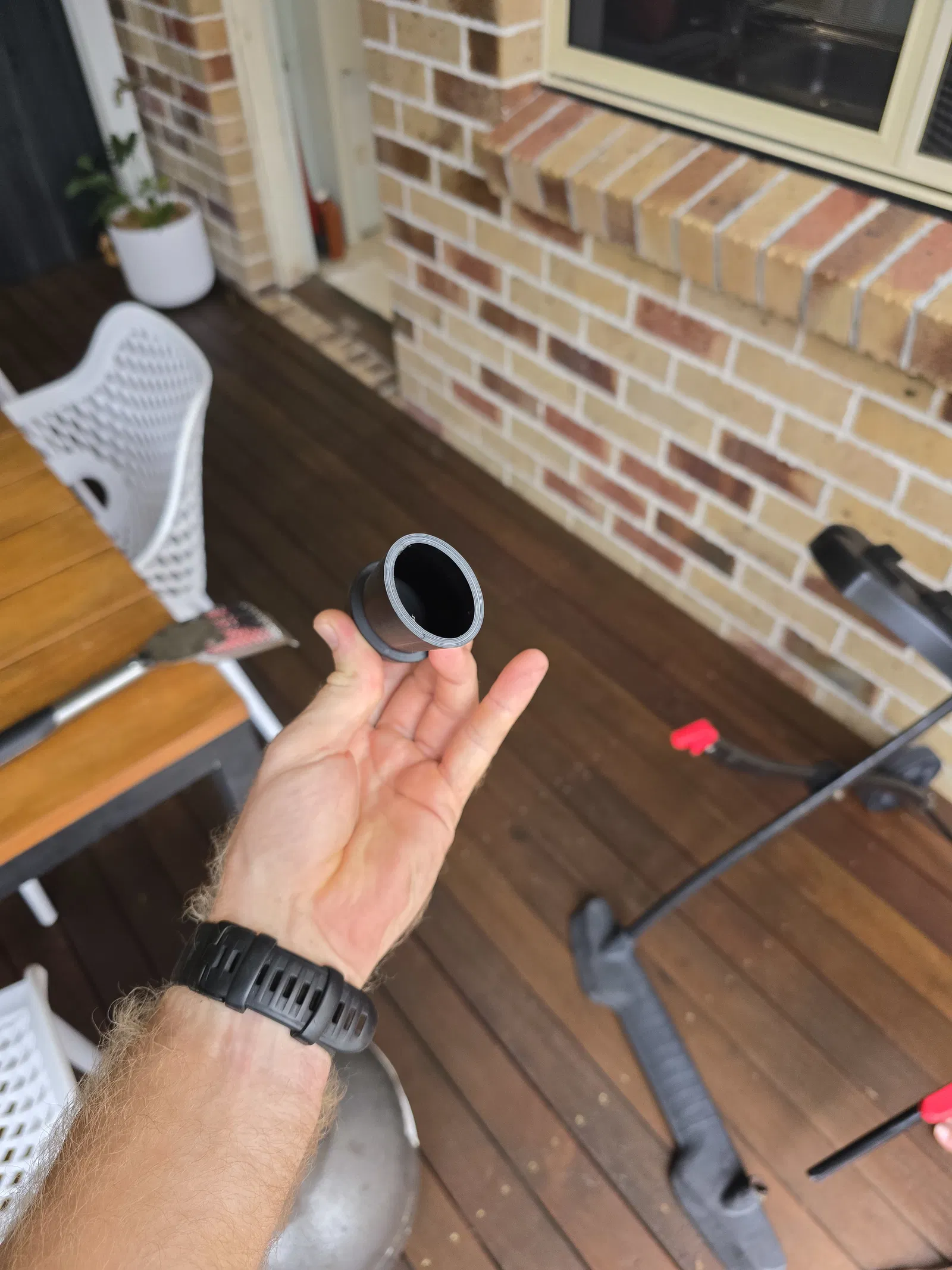Chân của cái stand của mình bị rỉ sét ngay chỗ nối với phần base nên gãy luôn. Mình cắt bỏ phần qua khỏi chỗ rỉ rồi làm cái “sleeve” này để gắn lại.