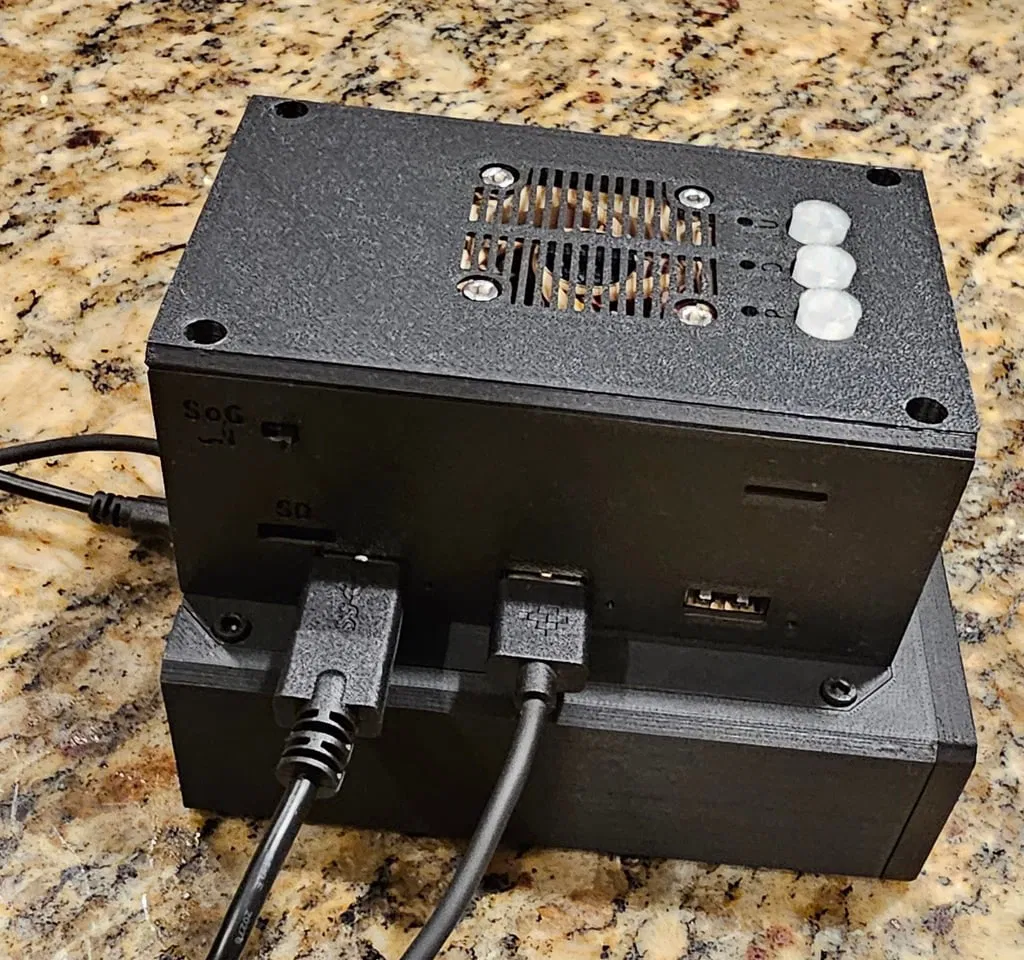 Vỏ MiSTer FPGA cho kit Kacenray (Analog IO, USB hub), và DE10-Nano, kèm tuỳ chọn gắn ổ cứng rời bên ngoài và màn hình OLED Teyleten Robot 3.12 inch SSD1322.