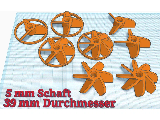 Một tập hợp nhỏ các hỗn hợp cánh cho trục 5 mm.