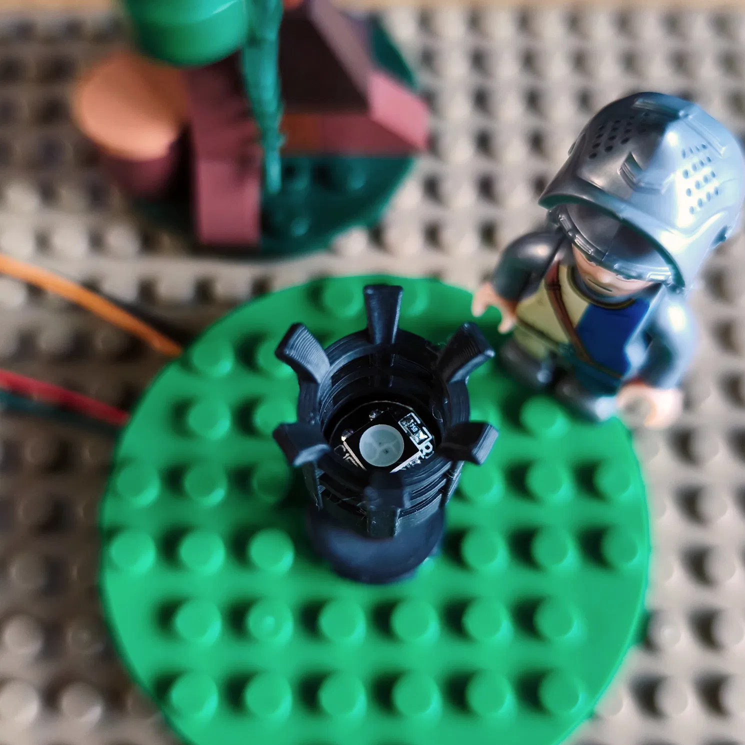 Mình chia sẻ 2 phần đầu cho đuốc đứng và phần ngọn lửa tương ứng cho diorama gạch kiểu trung cổ. Đuốc có thể gắn WS2812 hoặc các loại LED khác trên một board mạch tròn đường kính 10 mm để làm đèn. Đuốc tương thích với các loại gạch lắp ráp phổ biến, như loại quen thuộc từ Flörsheim hoặc Đan Mạch, và có thể đặt lên ví dụ như 2 viên 1x1 round brick.
