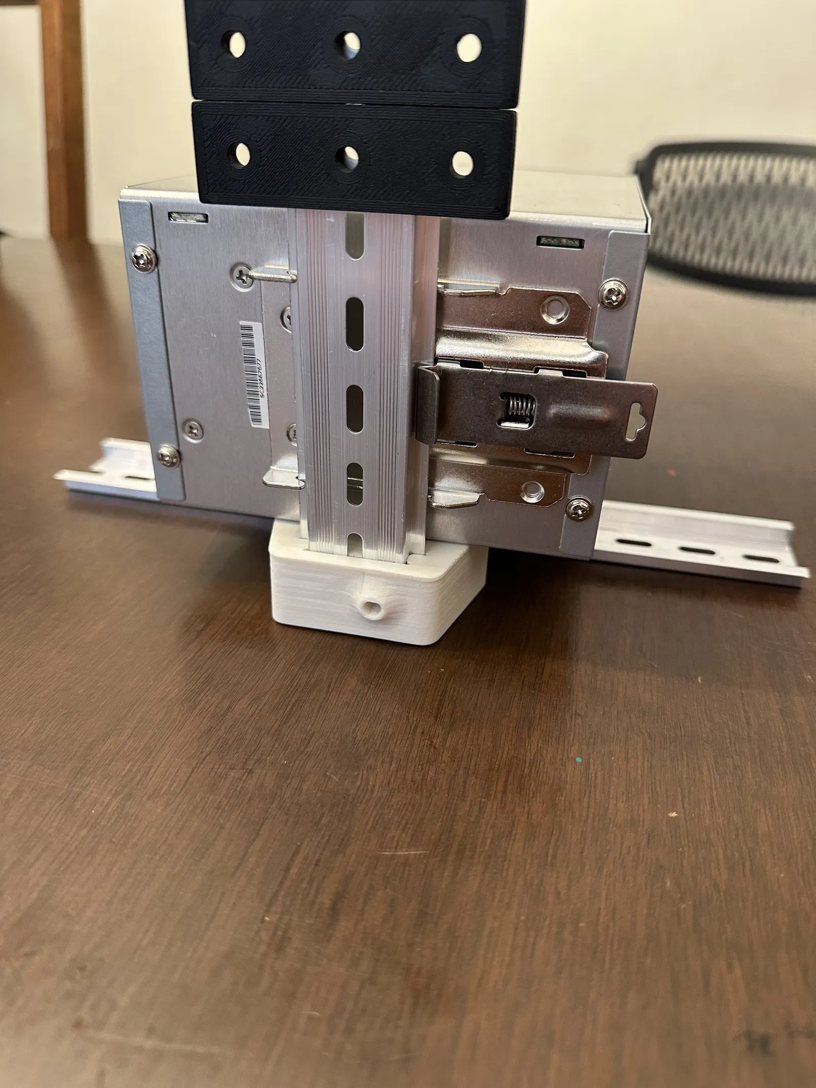 Phương án 1 dùng một loại adapter DIN Rail cho SSR bằng kim loại khá phổ biến, xài vít M4 button head. Tên duy nhất mình tìm được là R99-12_for_GNA3, nhưng chắc chắn ngoài thị trường còn loại khác. Dùng adapter đó để lắp là được.