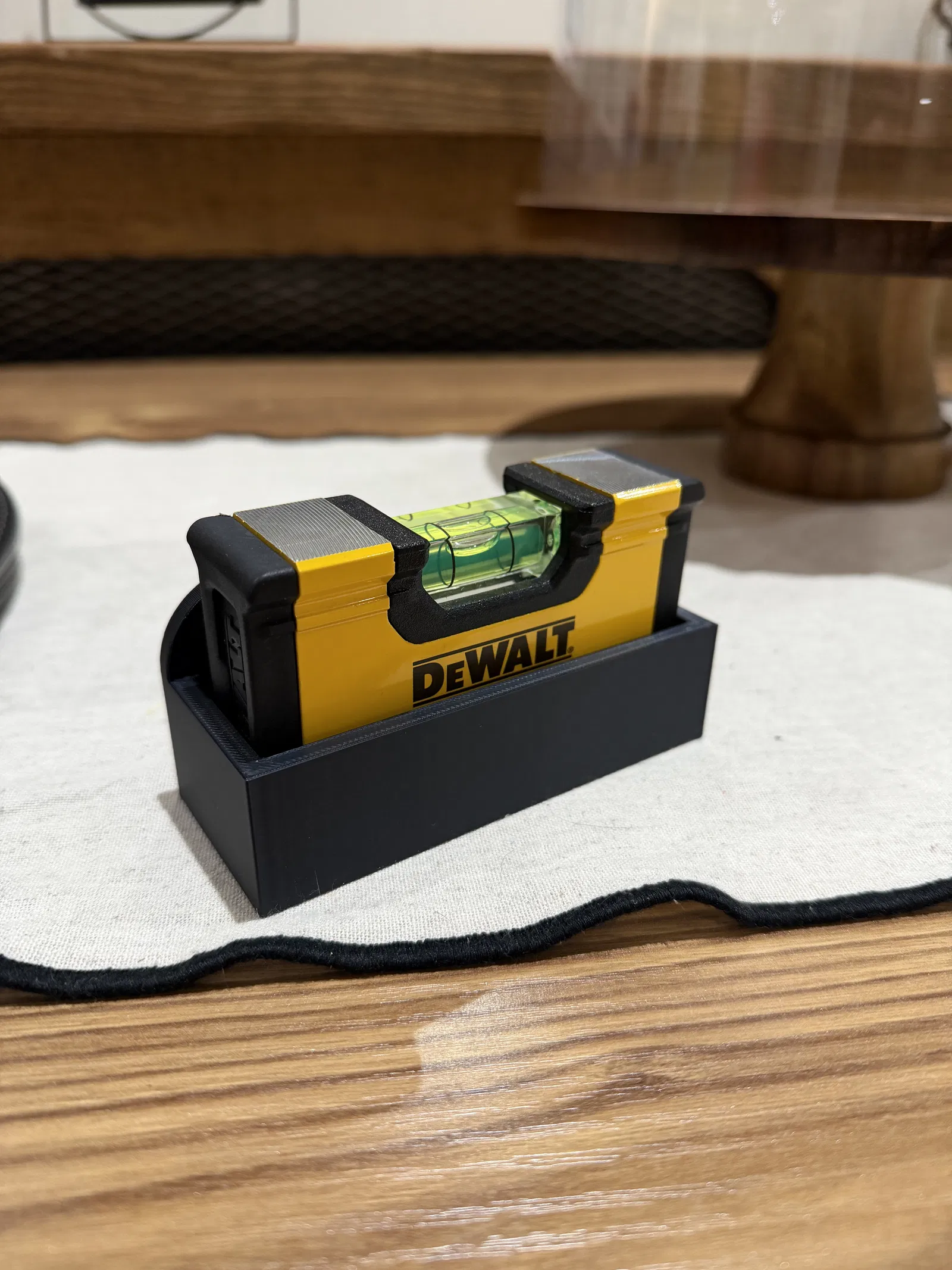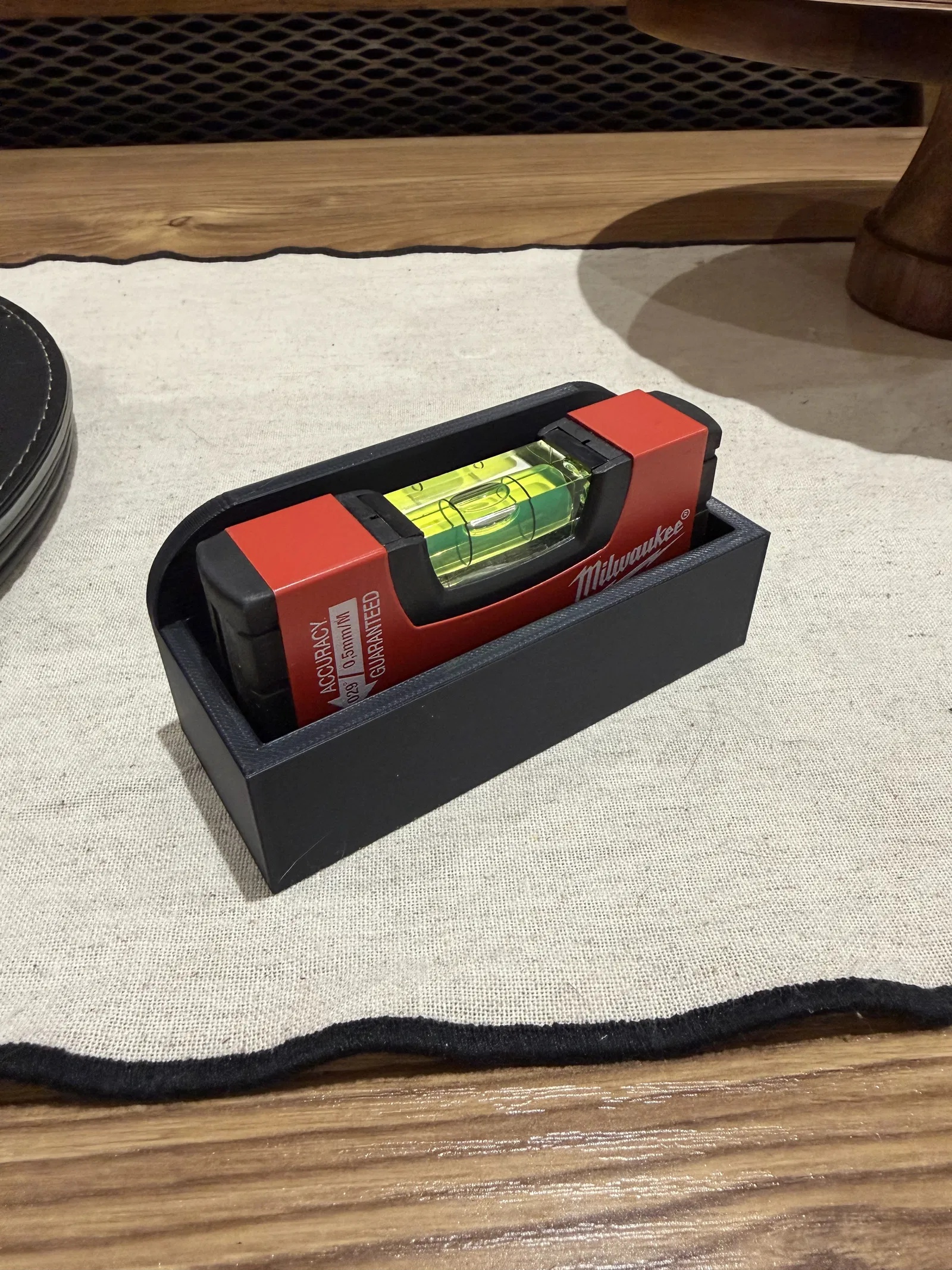 Giá treo tường nhỏ gọn cho thước thủy mini 100 mm, tối ưu cho DEWALT DWHT42801-5 và cũng dùng được với Milwaukee Minibox 4932459100. Thiết kế “tub” đơn giản, có thể scale để hợp nhiều dụng cụ nhỏ khác.