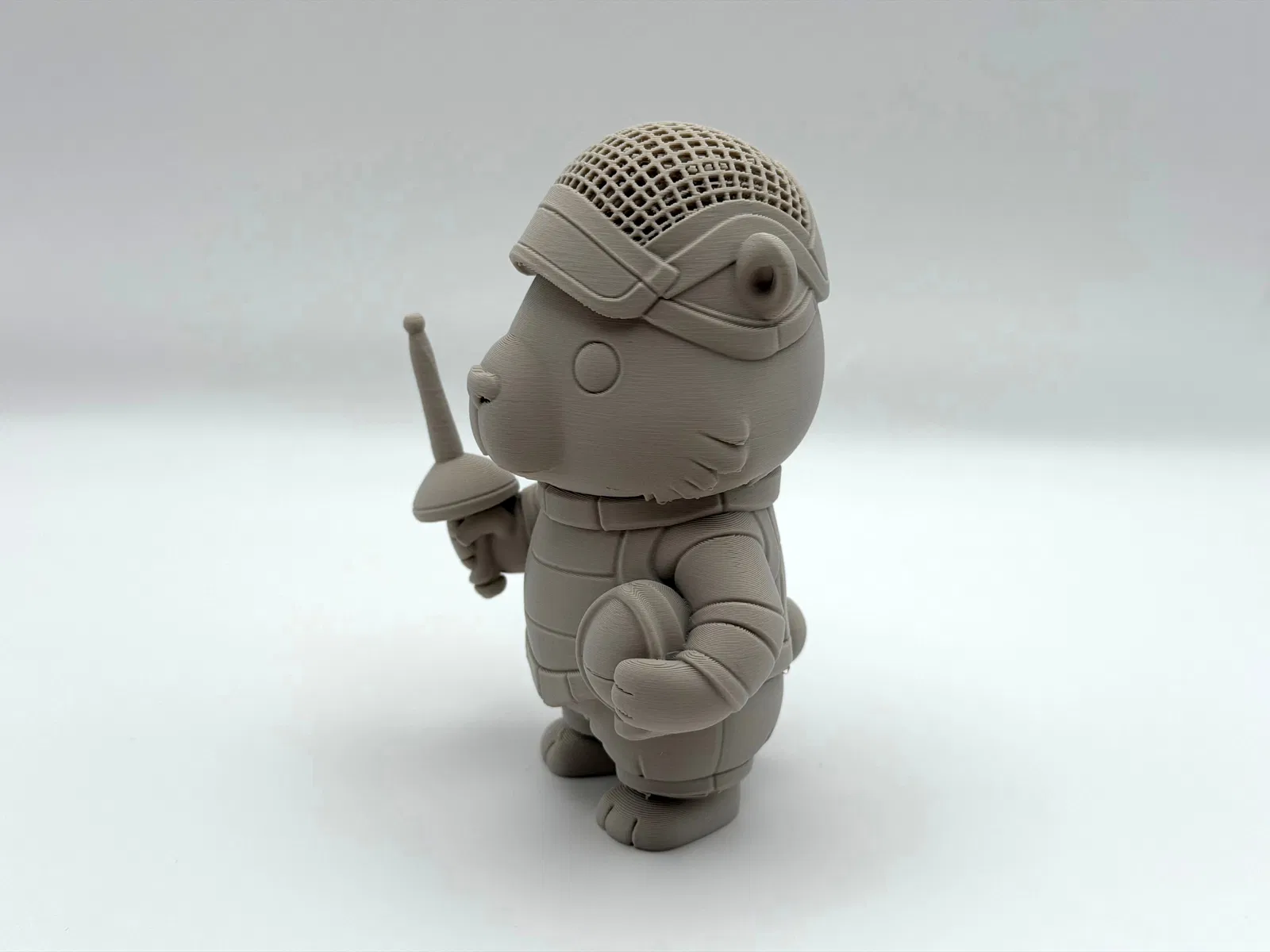 Fencing Capybara là một mẫu capybara đấu kiếm mũm mĩm, chi tiết đẹp để trưng bàn làm việc, kệ máy in hay góc vườn. Ít supports; dùng organic supports bóc ra gọn. Chỉnh Z-top height giúp tháo supports dễ hơn.
