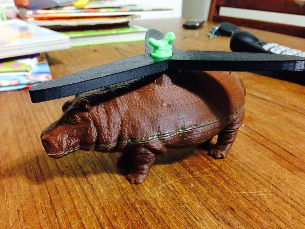 trộn một chiếc trực thăng với một con hà mã được in nhiều năm trước trên printrbot kim loại đơn giản
