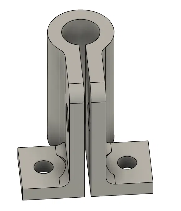 Kẹp chặt lên một thanh (rod) 8mm. Bắt vít vào một bề mặt vuông góc, ví dụ như puly gỗ. Khuyến nghị dùng PETG hoặc ABS để tránh bị nứt.