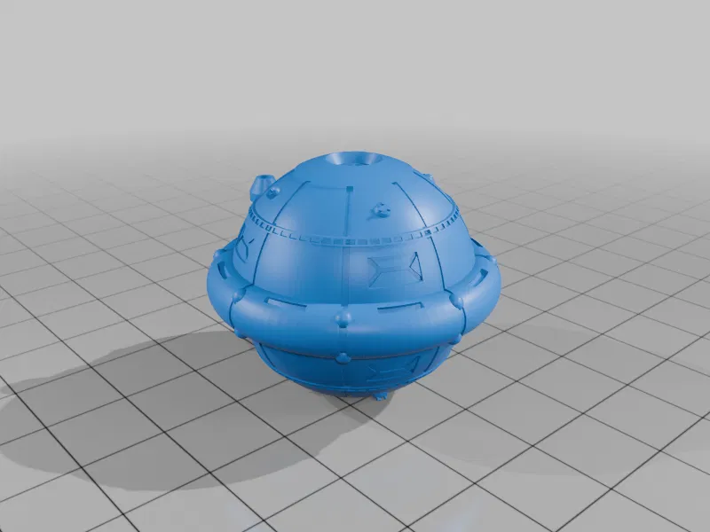 Mô hình tàu vũ trụ LFG ultralight cruiser Mahrani-class đường kính 60m, tỷ lệ 1:2000, bối cảnh Perry Rhodan (thế kỷ 21, Terra/LFG). Có bộ STL cho chế độ bay và hạ cánh, kèm chi tiết connector/pin.
