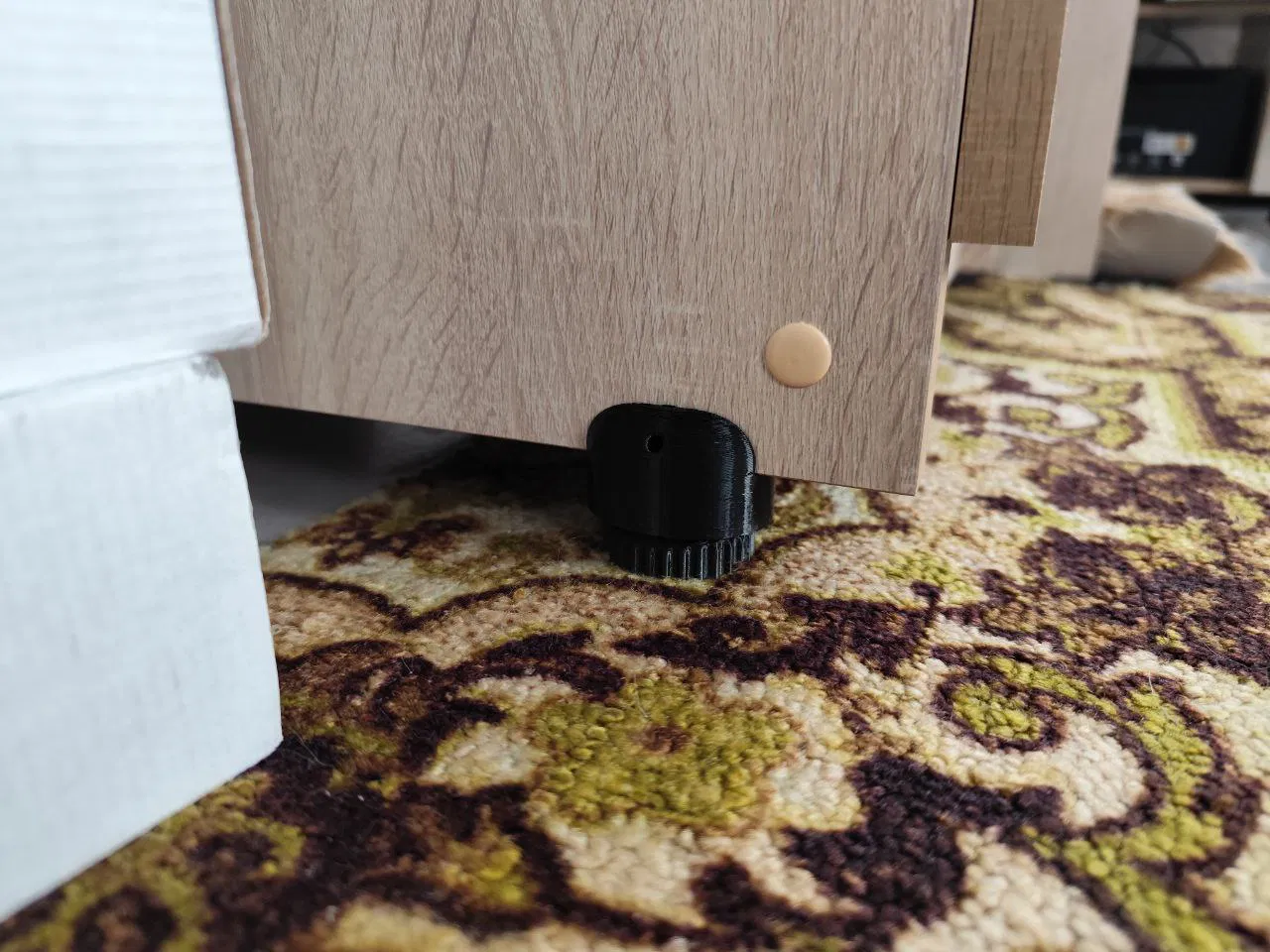 Mình cần chân cho tủ đầu giường, nhưng mấy mẫu trên website không đúng kích thước hoặc kiểu dáng. Phần dưới có ren để vặn lắp dễ dàng. Có thể in không cần support, dùng vật liệu nào cũng được. Rãnh phù hợp 16+ mm.