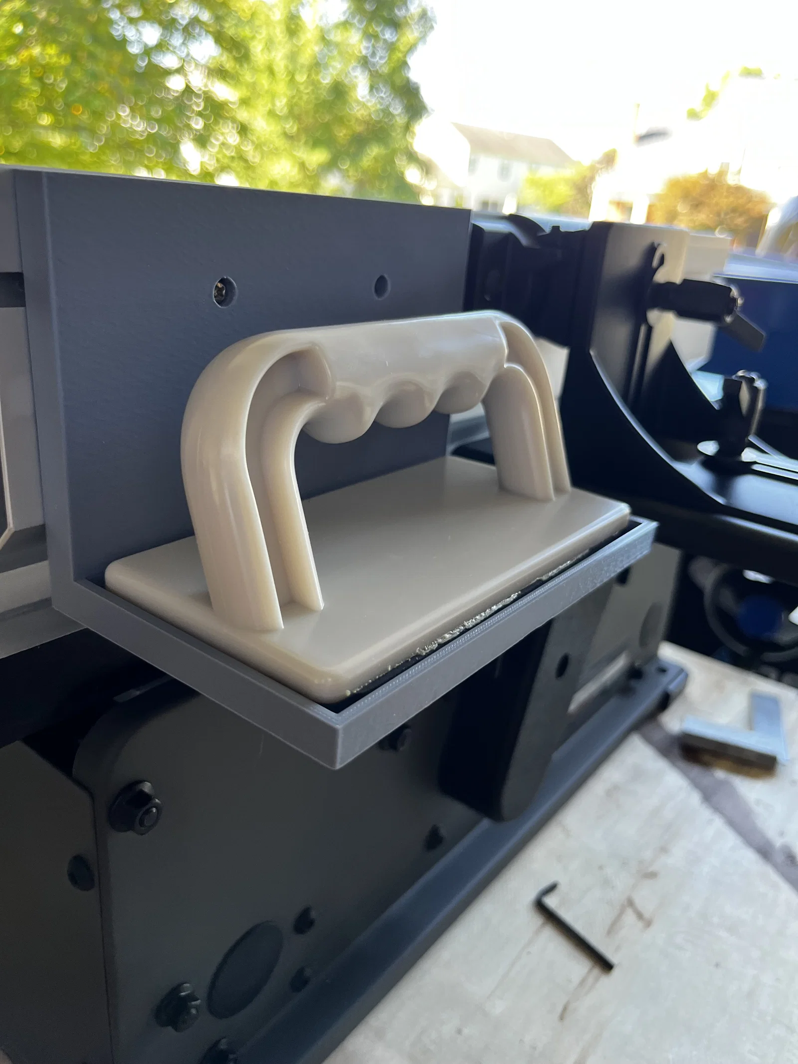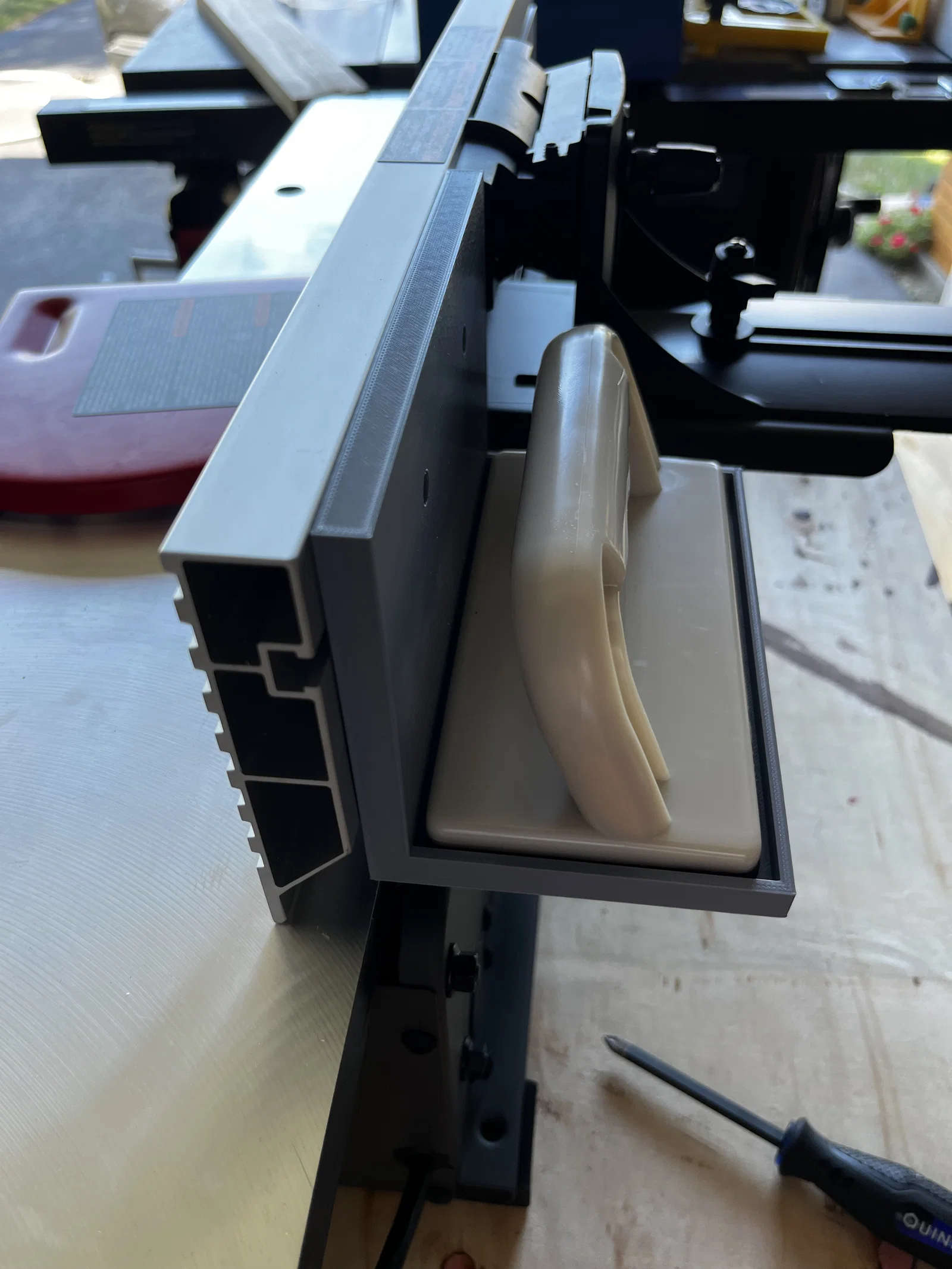 Giá đỡ khá đơn giản cho các khối đẩy ban đầu đi kèm với bộ nối cáp Porter. Người giữ gắn ở mặt sau của hàng rào, và từ trên xuống dưới chỉ là những gì mà hàng rào đo. Nó chắc chắn có thể ngắn hơn, nhưng tôi muốn nó trông đồng nhất với chiều cao của hàng rào.