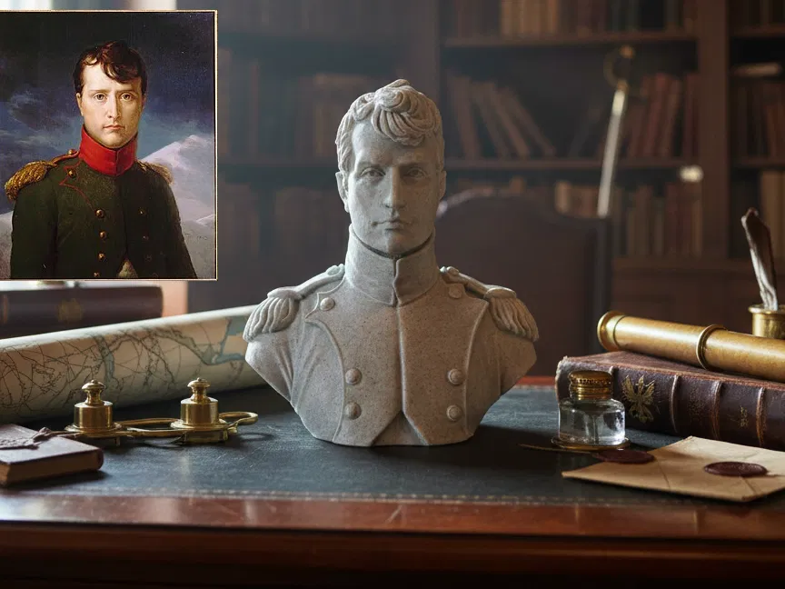 Bức tượng bán thân này tái hiện Napoléon I Bonaparte, nhân vật trung tâm trong lịch sử Pháp và châu Âu. Mẫu được lấy cảm hứng trực tiếp từ bức tranh Portrait de Napoléon Bonaparte, premier consul, do François Gérard vẽ năm 1803 và hiện được lưu giữ tại Musée Condé. Tác phẩm mang tính biểu tượng này cho thấy Napoléon ở thời điểm then chốt trên con đường thăng tiến, khi ông đã thể hiện rõ quyền uy, sự ổn định chính trị và tham vọng của một chế độ mới.