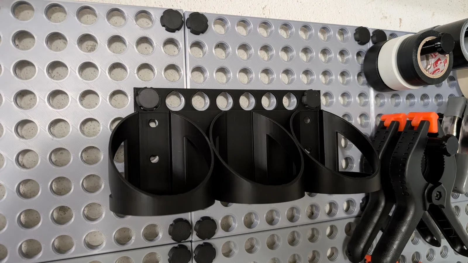 Mẫu giá treo (can holder) dùng cho hệ Threaded Board, giúp bạn treo gọn 3 bình xịt hoặc các loại lon tương tự lên bộ giá Threaded Board hiện có, tiện sắp xếp và tiết kiệm diện tích.