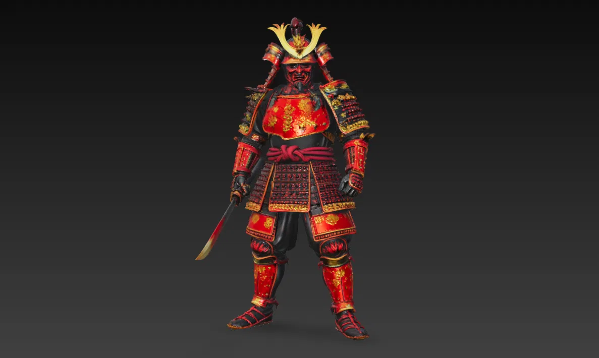 Bộ giáp samurai chi tiết lấy cảm hứng từ các truyền thuyết oni Nhật Bản, thiết kế để 3D printing và sơn trang trí.