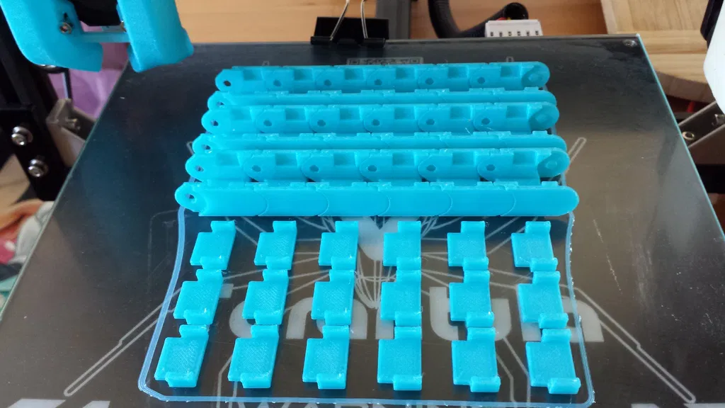 Sau khi in, các khớp có thể bị dính nhẹ. Dùng một chút lực để bẻ cho nó tách ra. Với mỗi mắt xích, bạn cũng có thể kẹp chặt phần khớp bằng hai ngón tay rồi lắc mắt xích kế bên vài lần để làm sạch phần khớp khỏi bavia/cặn.