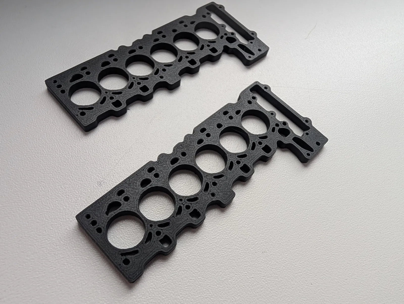 Mẫu móc khóa lấy cảm hứng từ gioăng quy-lát (head gasket) của động cơ BMW N52B30. Thiết kế dài 80mm, dày 3mm; gợi ý in layer 0.2mm, 100% infill, nozzle 0.4 và bật ironing cho mặt đáy màu đen.