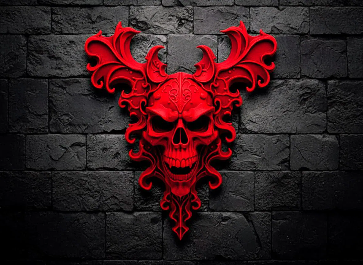 Tác phẩm tranh phù điêu (bas-relief) phong cách gothic này nắm bắt đúng chất dark fantasy với mô-típ sọ người nổi bật, phần “sừng” xoắn lượn như gạc hươu vươn ra hai bên, cùng các họa tiết trang trí tinh xảo. Thiết kế dạng phù điêu nông và thường in một màu đậm, nên lên tường rất “ăn mắt”, tạo điểm nhấn mạnh mẽ nhờ thần thái kịch tính và độ chi tiết cao.