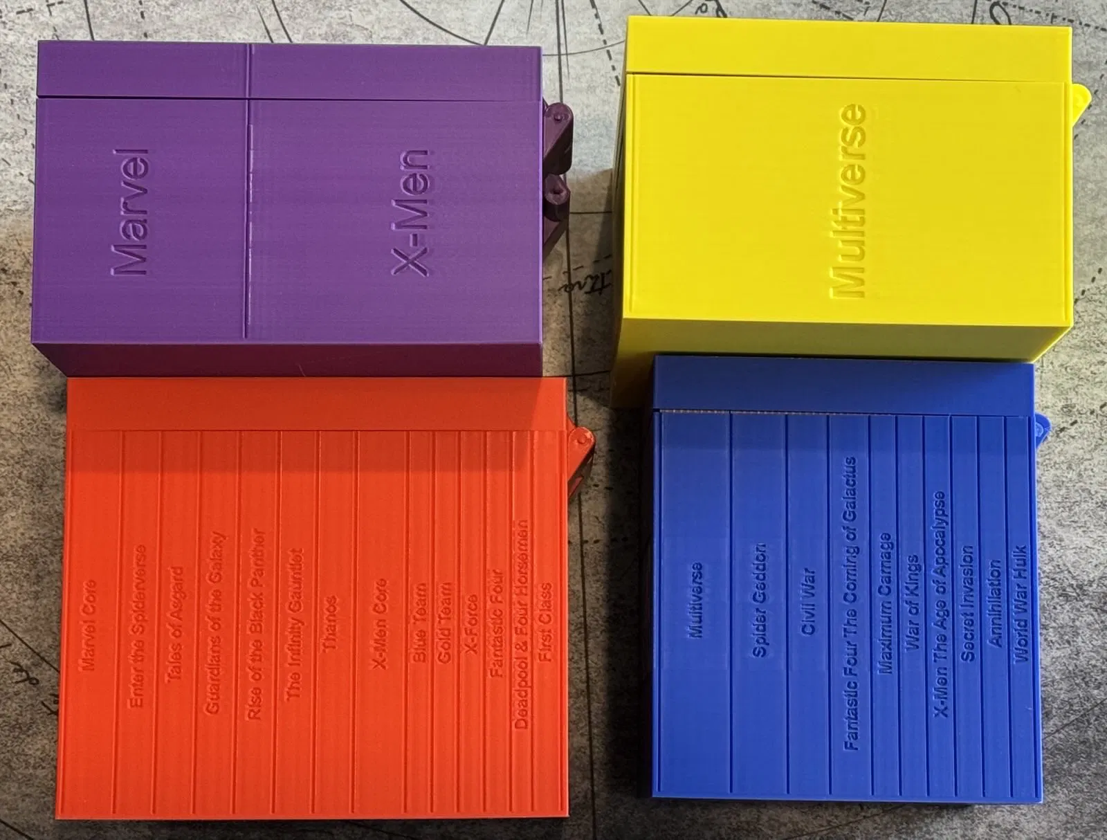 Mình dùng Bambu X1C và có thể print mỗi layer trong 1 file. Mình đang upload cách mình đã in (mọi thứ đã được stitch và model chung lại) và gộp kèm bộ sưu tập các file bổ sung cho Marvel United Storage.