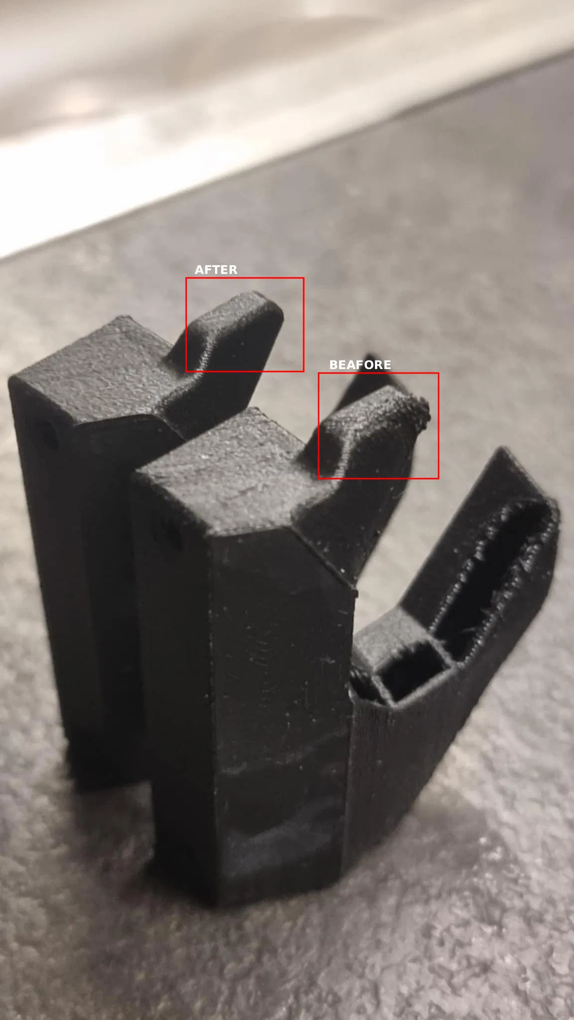 Luồng gió đã được tối ưu để làm mát đều hơn và tập trung đúng quanh khu vực nozzle, nhờ đó overhang đẹp thấy rõ và giảm tình trạng chảy xệ hoặc bề mặt bị sần khi in các góc khó. Trong các tình huống in bình thường, mức làm mát tổng thể vẫn tương đương thiết kế gốc, nhưng overhang là phần hưởng lợi nhiều nhất.