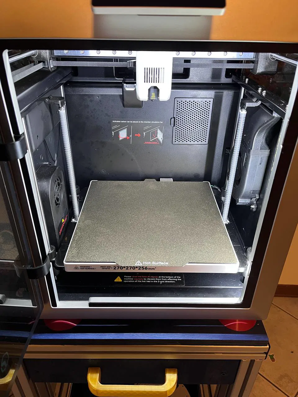 In kèm supports; các supports cần thiết đã được thể hiện trong các slide. Mình dùng filament PETG vì nhiệt độ trong buồng in thường không vượt quá 60°C.