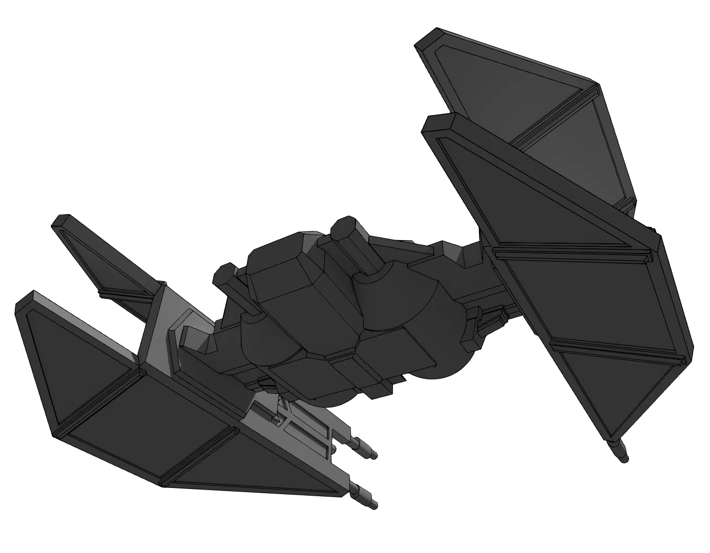 Mẫu Star Wars First Order TIE Bomber trong Star Wars: Resistance, thiết kế tinh gọn hơn bản thời Đế Chế với cockpit và ordnance pods ngắn hơn, wing-panel interceptor lắp ngược. In STL 0.15mm, cần supports.