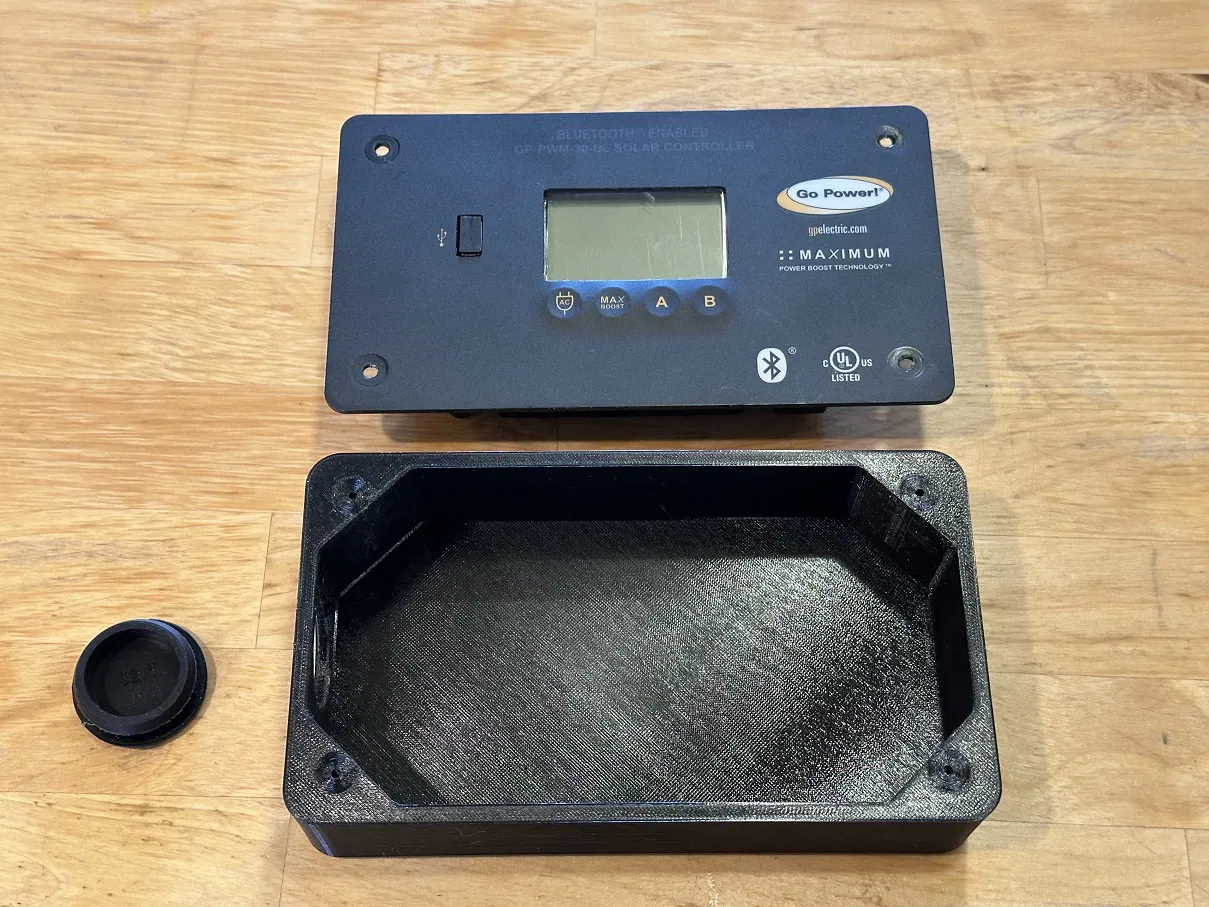 Đây là một hộp enclosure bảo vệ đơn giản dành cho bộ điều khiển sạc pin năng lượng mặt trời GoPower GP-PWM-30-UL. Mình muốn dùng bộ controller này như một bộ portable cùng với các tấm pin solar di động để sạc và duy trì nhiều loại pin khác nhau, gồm lithium, AGM và lead-acid. GP-PWM-30-UL vốn được thiết kế để lắp cố định với panel.