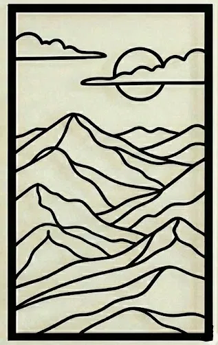 Bộ 3 khung cảnh núi non và dòng sông cực kỳ ấn tượng. Line art tối giản nhưng vẫn lột tả được tinh thần phiêu lưu, khám phá. Look